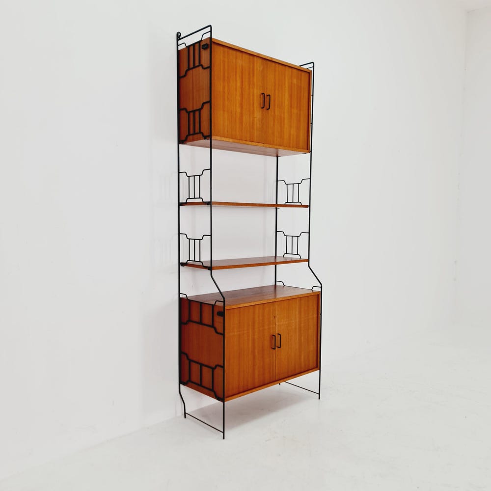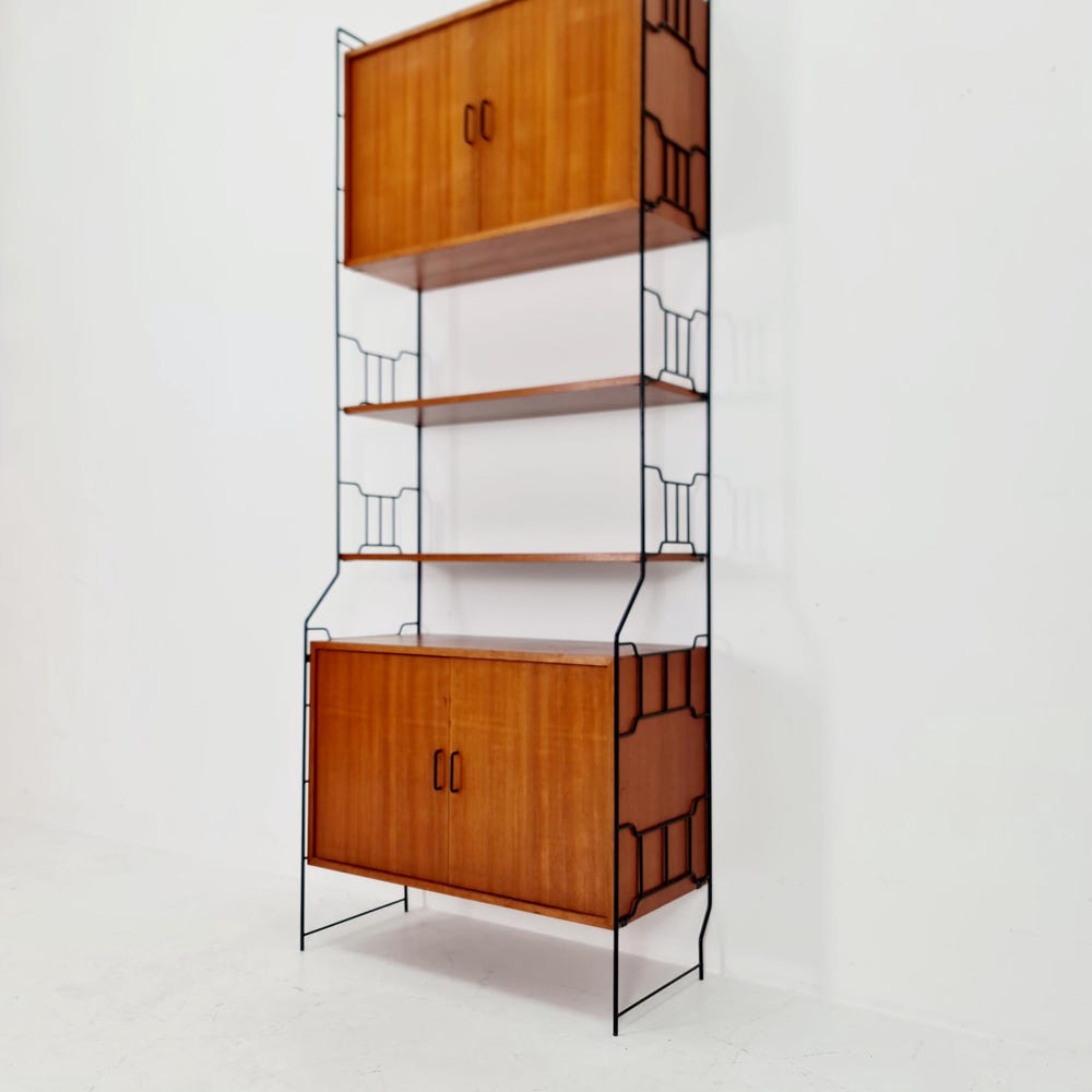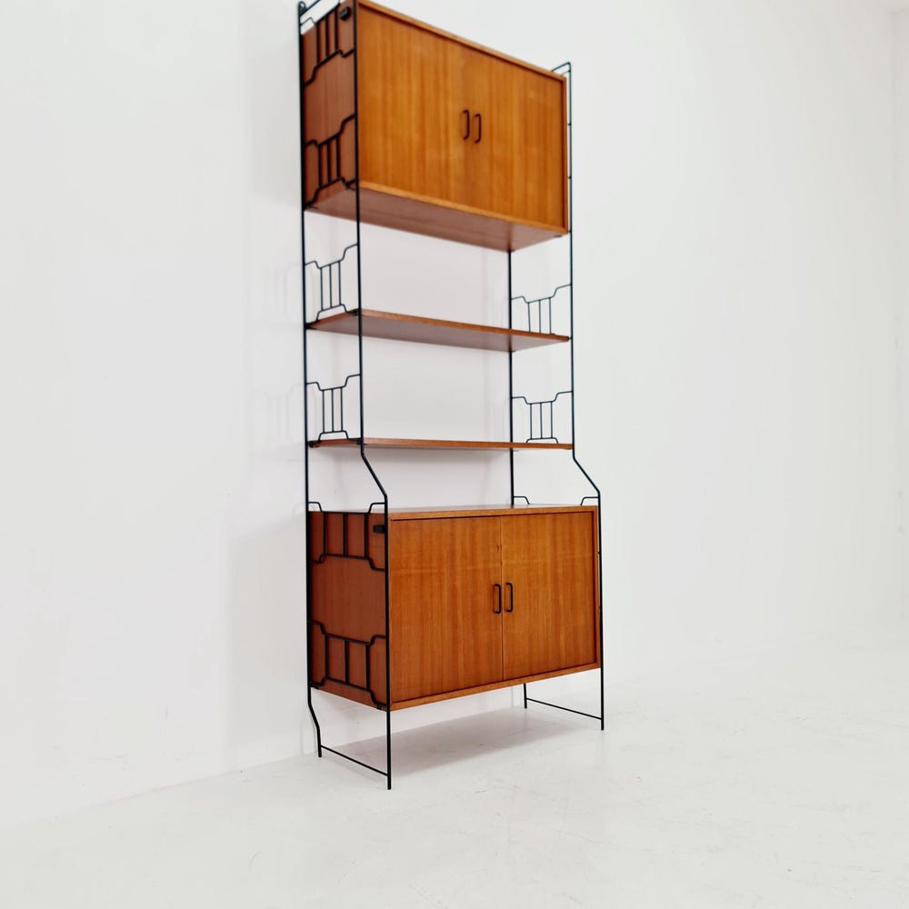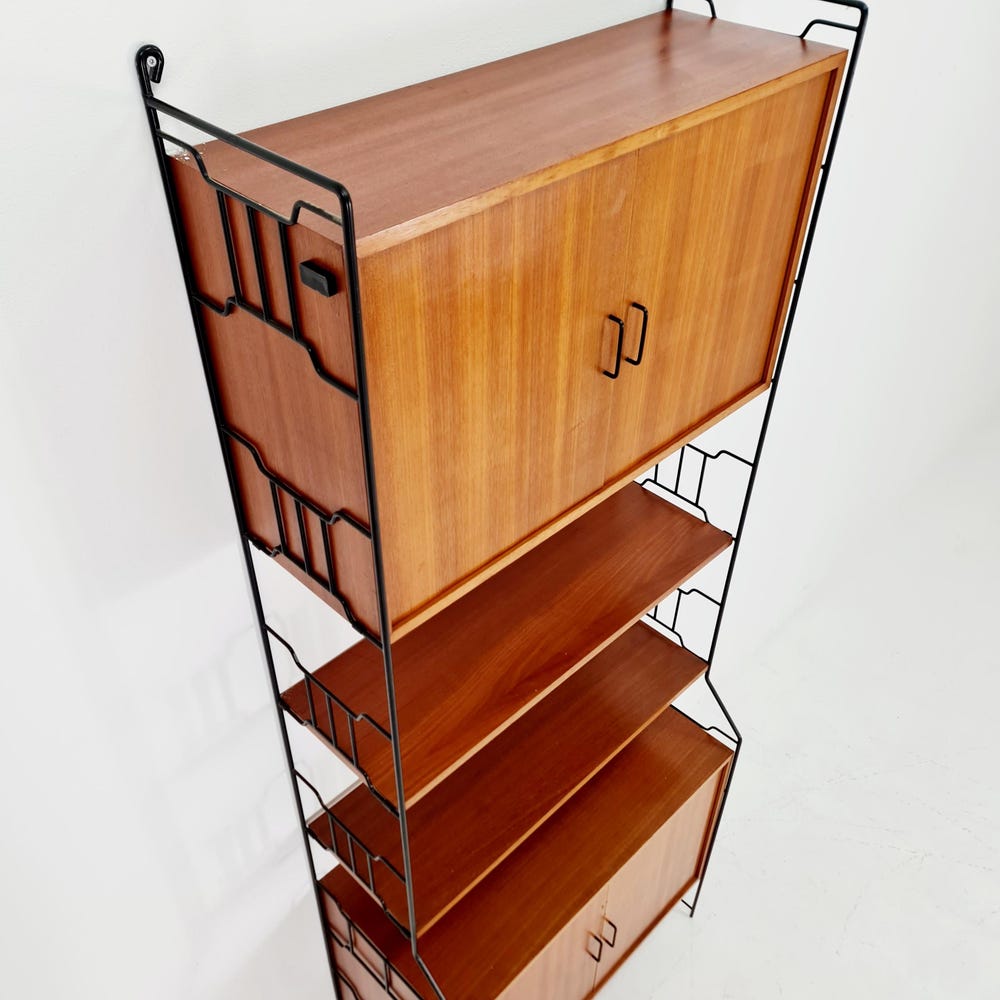 String shelf system, bookcase with cabinet teak by WHB Germany, 1950s