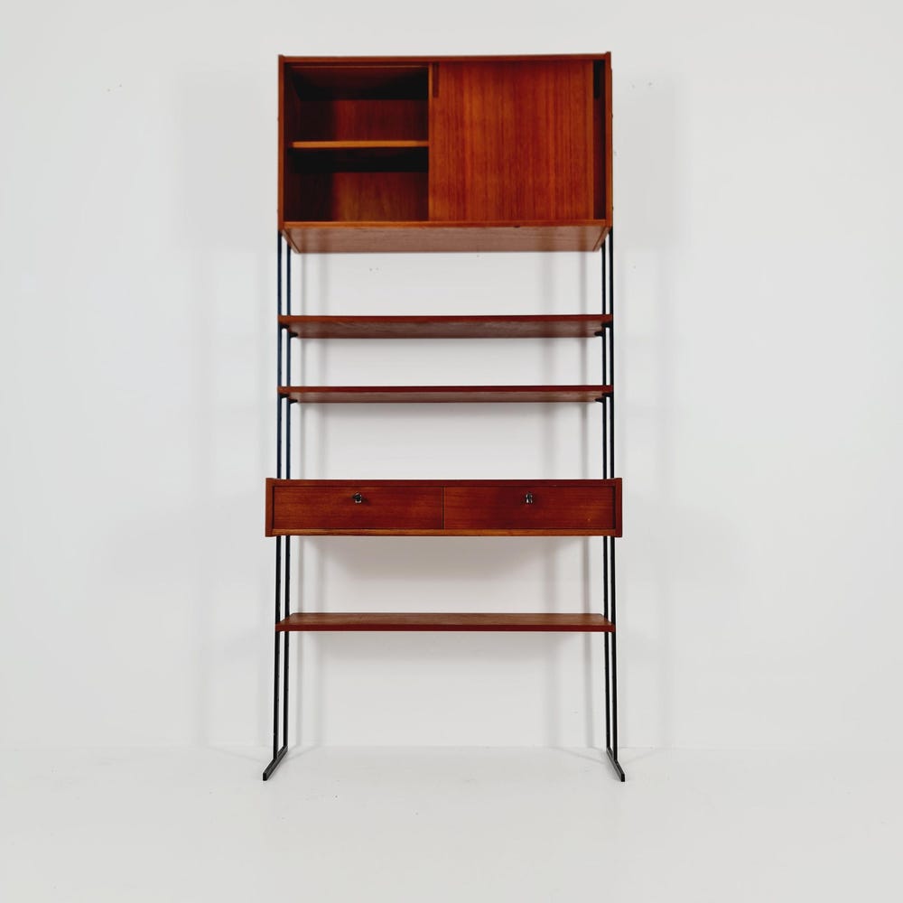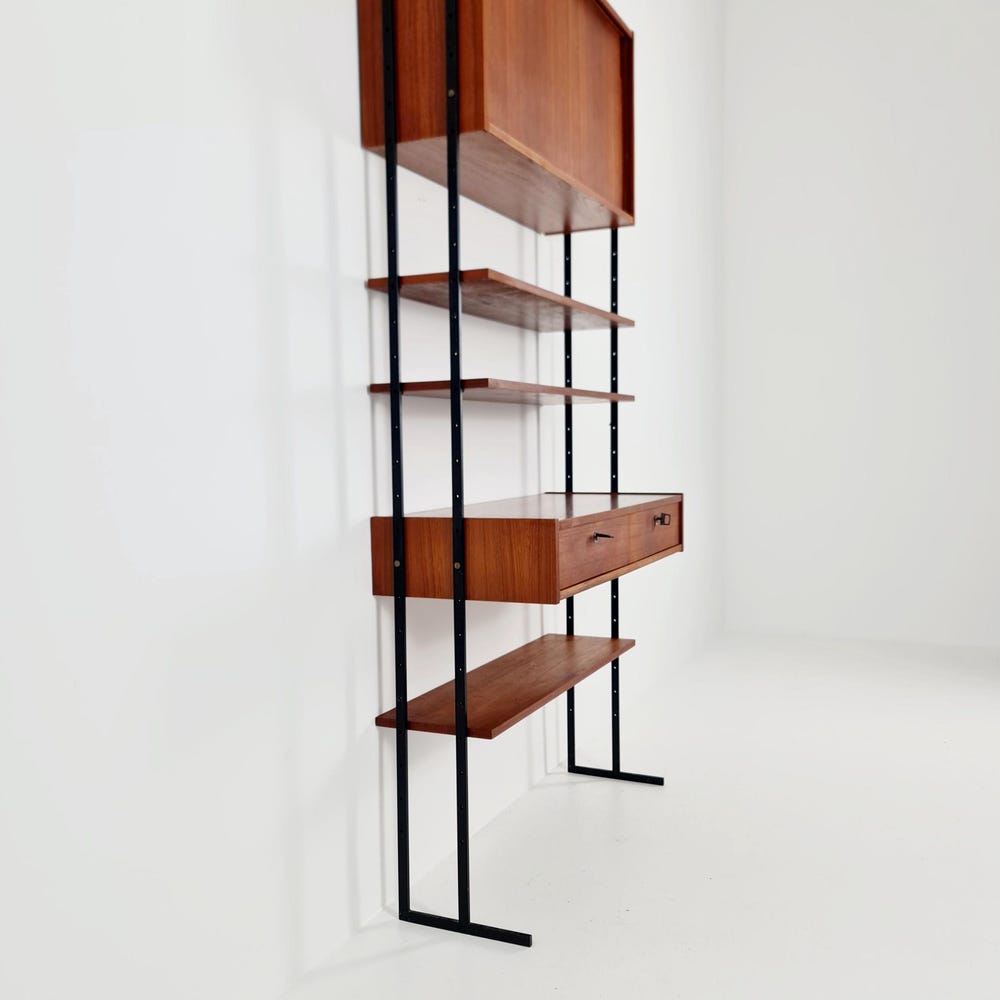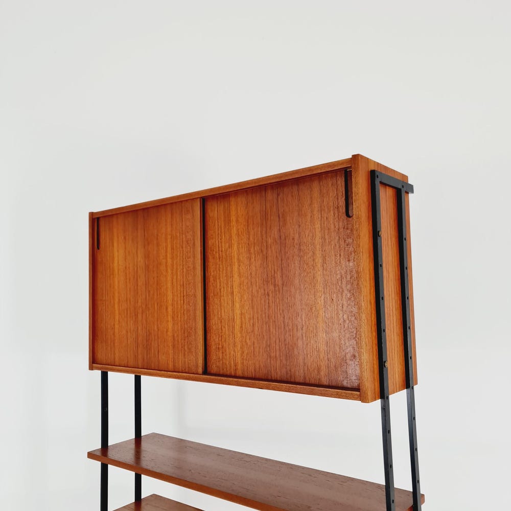 String shelf system, bookcase with cabinet teak Germany, 1950s