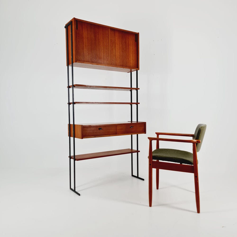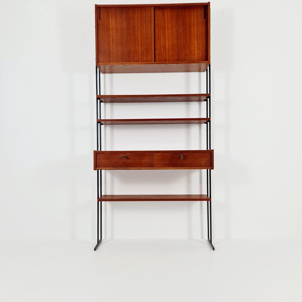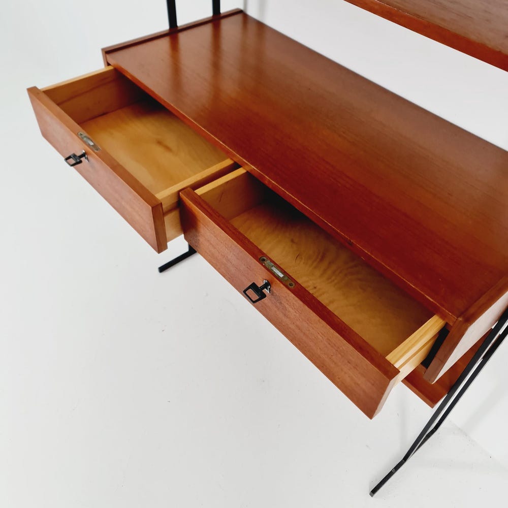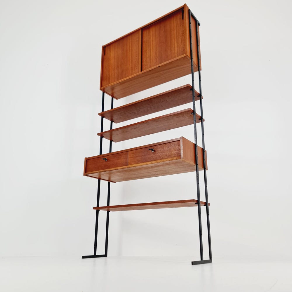 String shelf system, bookcase with cabinet teak Germany, 1950s