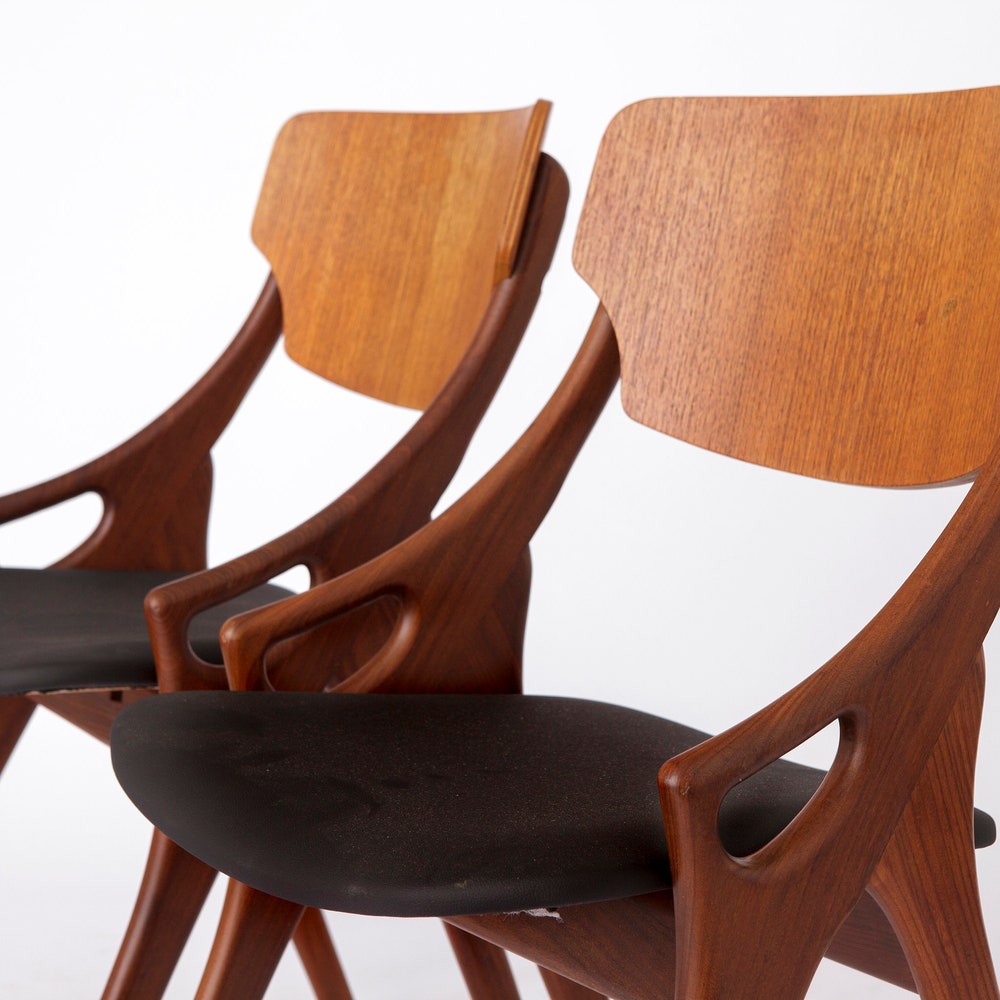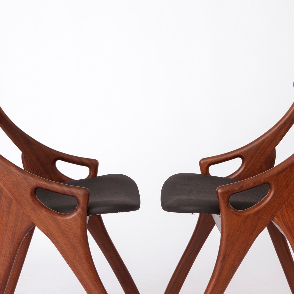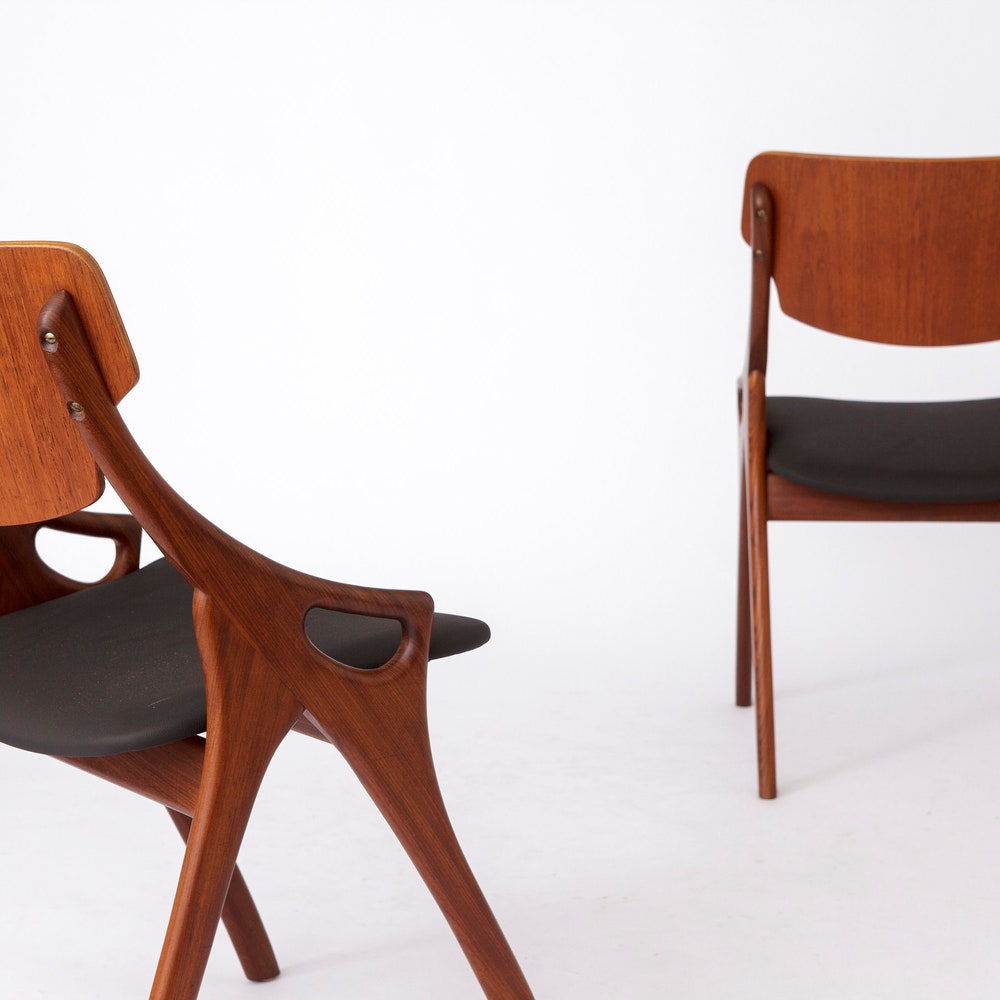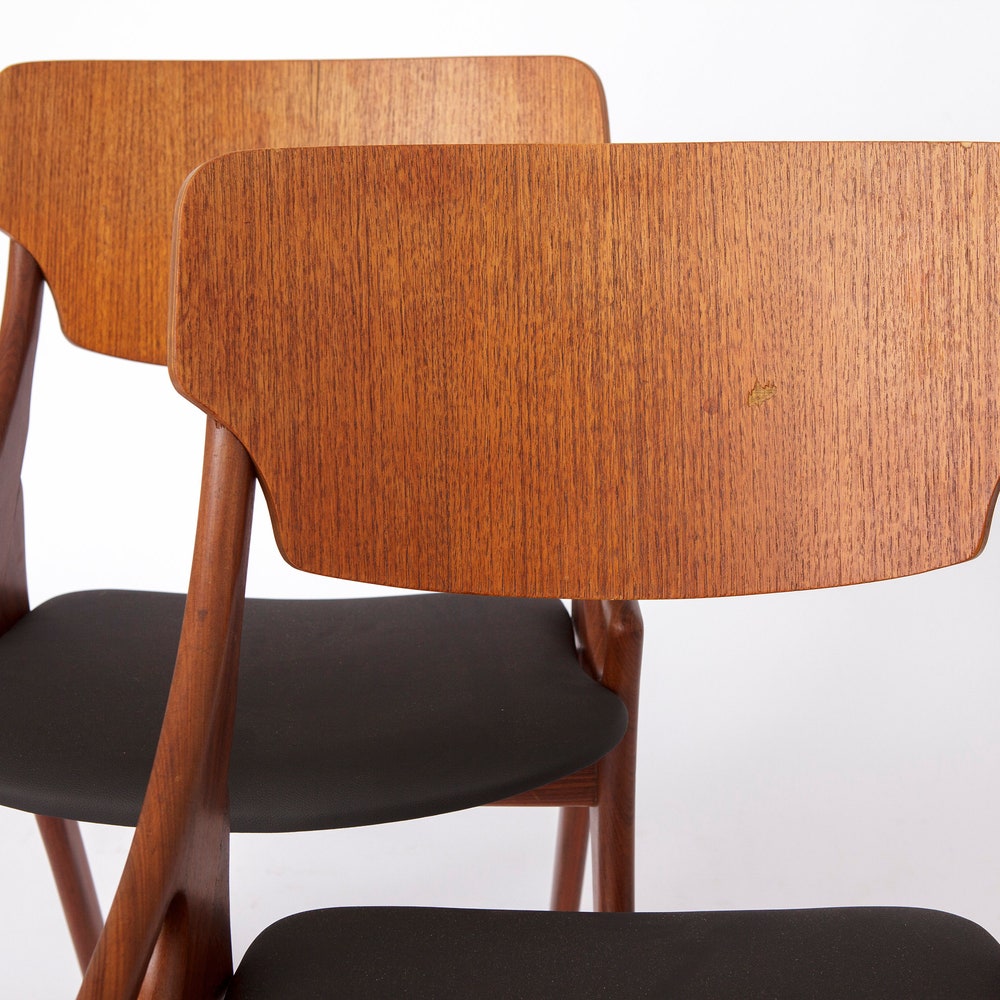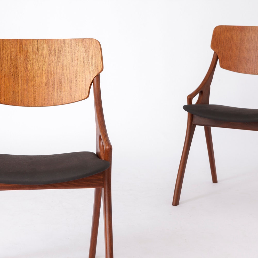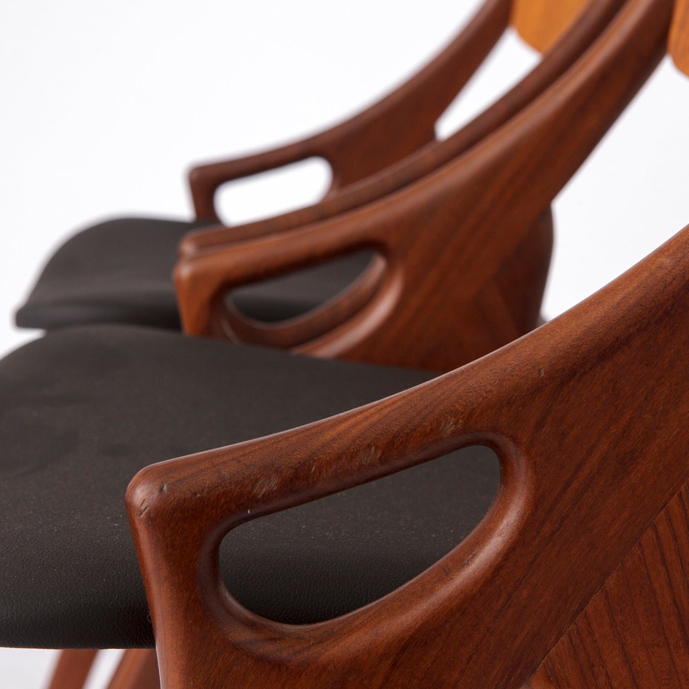 Stunning Pair of Arne Hovmand-Olsen Teak Dining Chairs – Mid-Century Design, Reupholstered in Black Skai