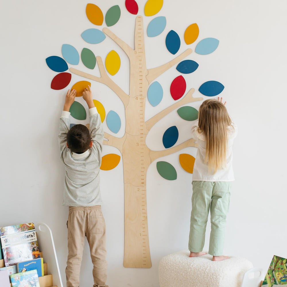 Watch your little ones grow with our charming kid’s growth chart tree with leaves!