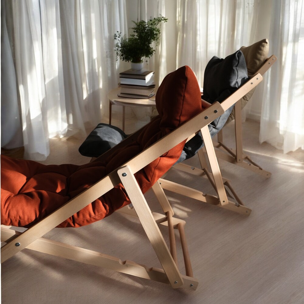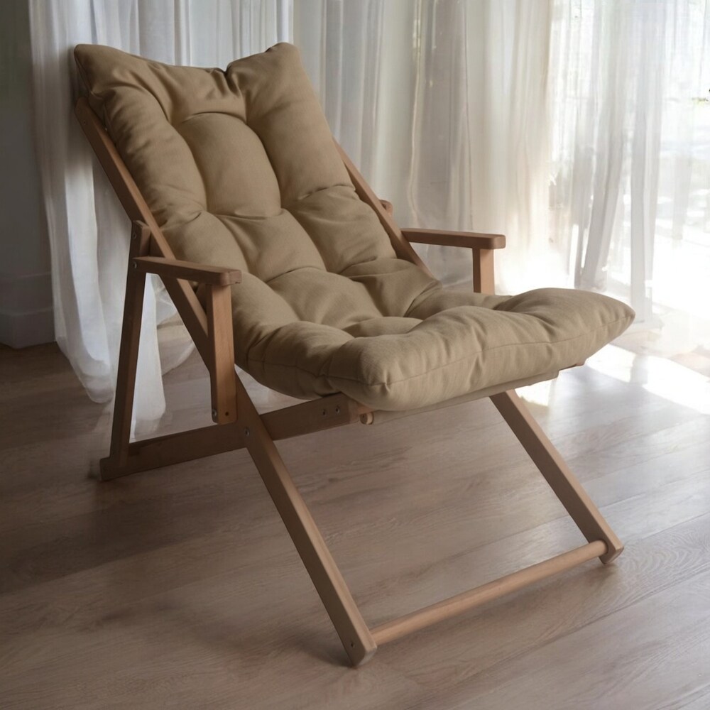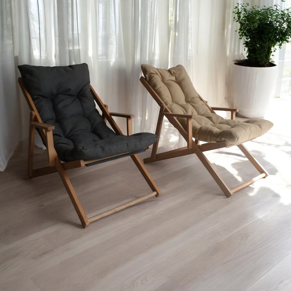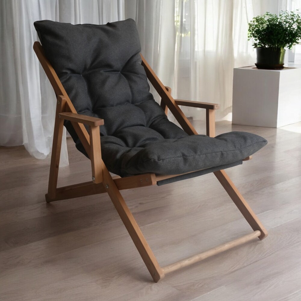 🌟 Introducing our handcrafted wooden sun lounger – the perfect addition to any garden, patio, or poolside. Designed to offer the ultimate relaxation experience, this elegant chaise lounge chair masterfully combines functionality with a touch of rustic charm. Our folding deck chair is your new companion for outdoor comfort and style. The sturdy frame is complemented by a plush, water-repellent cushion that invites you to indulge in comfort without concern — perfect for poolside reading or soaking up the sunshine on your patio. Premium wooden sunbed & garden chair, stylish deck chair.