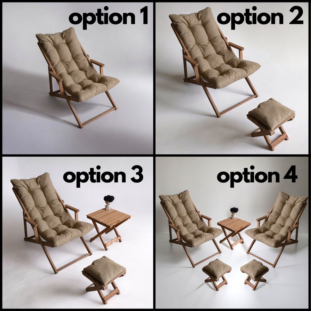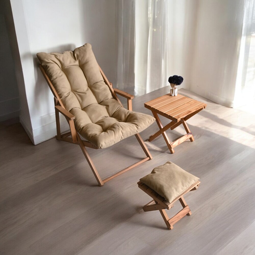 📐 Crafted from high-quality, sustainable wood, this lounger is built to withstand the elements, maintaining its beauty through all seasons. The natural finish highlights the wood’s grain, enhancing its organic allure and ensuring that each piece is uniquely yours. This chair measures approximately 120cm in length, 52cm in width, and features an adjustable backrest for personalized comfort. Easily foldable, it’s convenient to store or carry, making it ideal for both spontaneous day trips and enhancing permanent outdoor setups. The dimensions of the foldable table that you can add to your cart from the purchasing options are: 40x40x40 cm. The dimensions of the mini stool that you can add to your cart from the purchasing options are around: 28x28x28 cm.