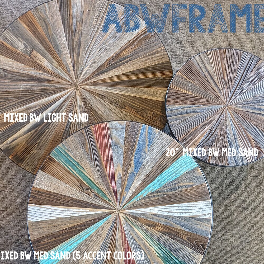 Add a Burst of Sunlight to your Living room, Gameroom, Salon or Mancave with this classic coffee table design reimagined using naturally weathered reclaimed wood! The combination of colors and textures only found in authentic aged barnwood will breathe life and beauty to any room, with a round design to add functionality and modern simplicity. Handmade in the USA each piece is unique. Choose from a wide variety of accent colors, mixed with the Barnwood for a coastal driftwood feel, or lighten thing up with more modern light stained reclaimed wood finish. Whatever you choose, every AllBarnWood circle coffee table will be practical, functional, and beautiful for generations.