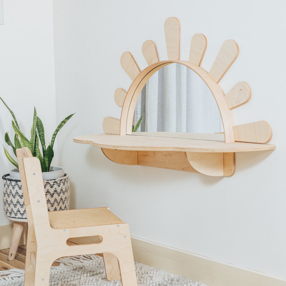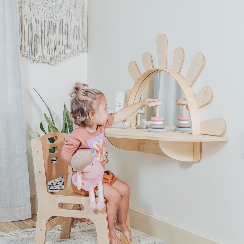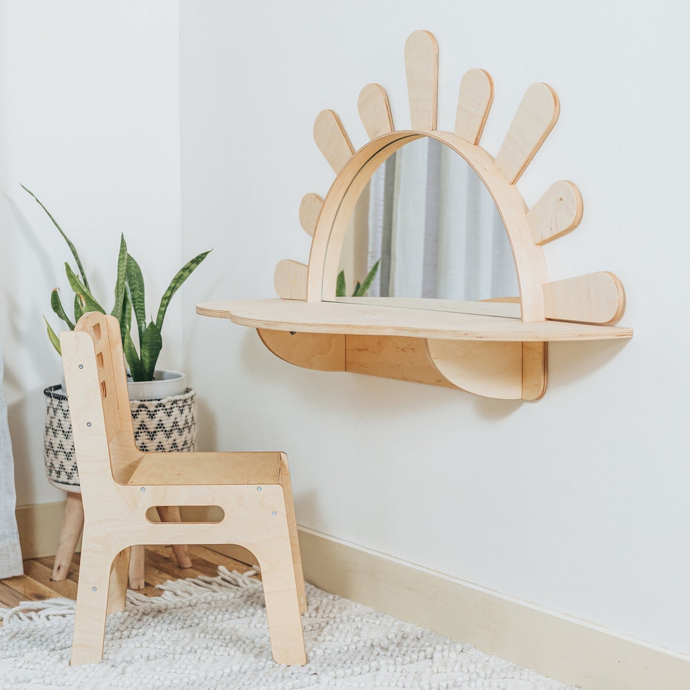 Sunshine Wall-Mounted Activity table with Chair, Set Desk and chair for 4 year old, Toddler Furniture, Montessori table, Baby dressing table