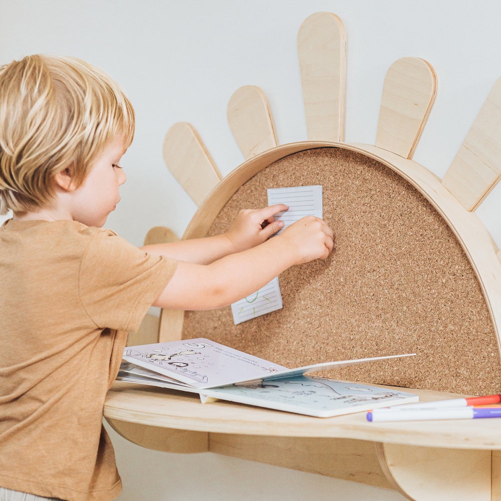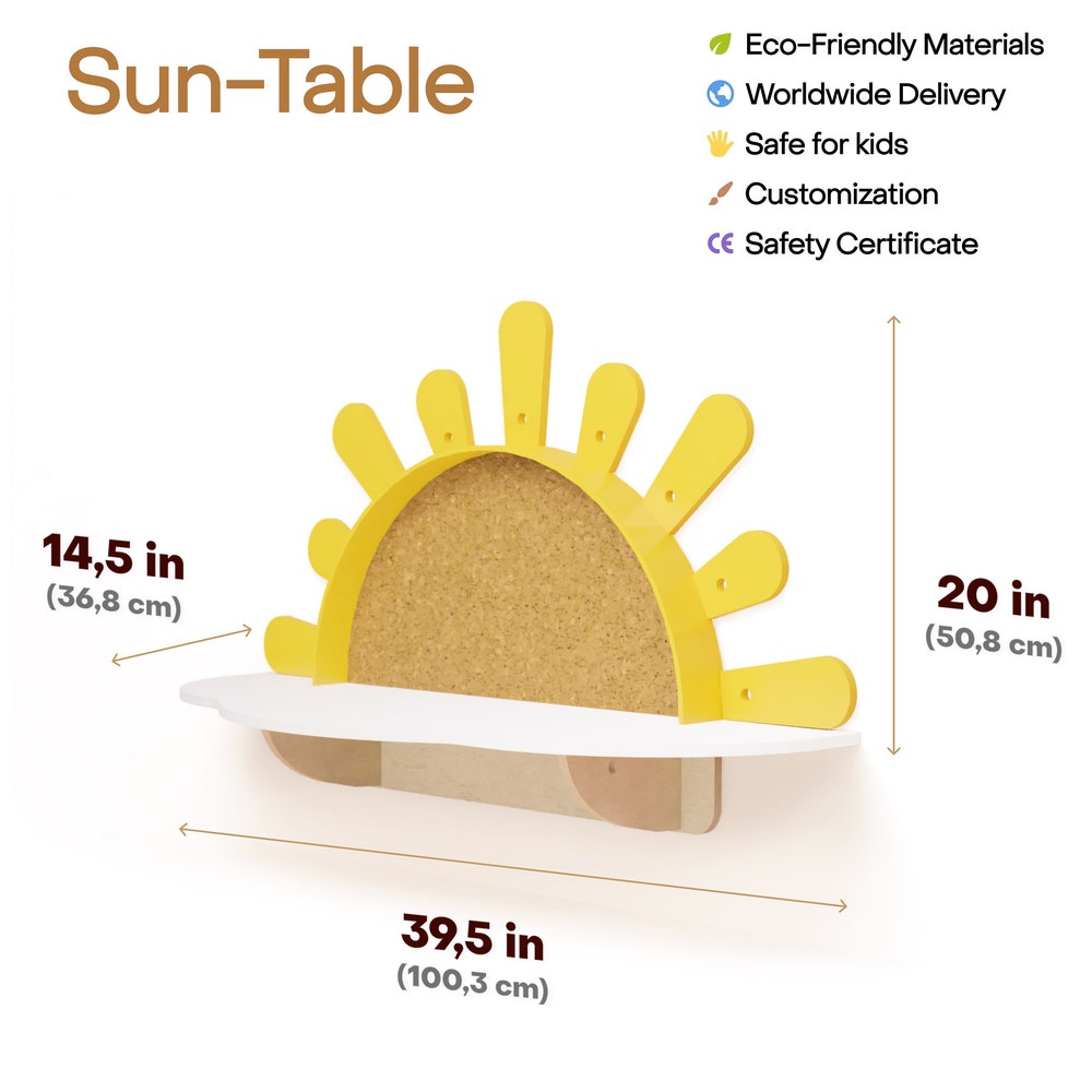 The Listing consists in color Natural Wood:ONE “SUN” Table+ ONE Chair This wall-mounted table with cork board (or mirror) is a great idea for apartments and smaller shared rooms. Product features: ✔️ Developmental Needs: Children have different physical and cognitive requirements compared to adults. A table that is specifically designed for their size and needs […]