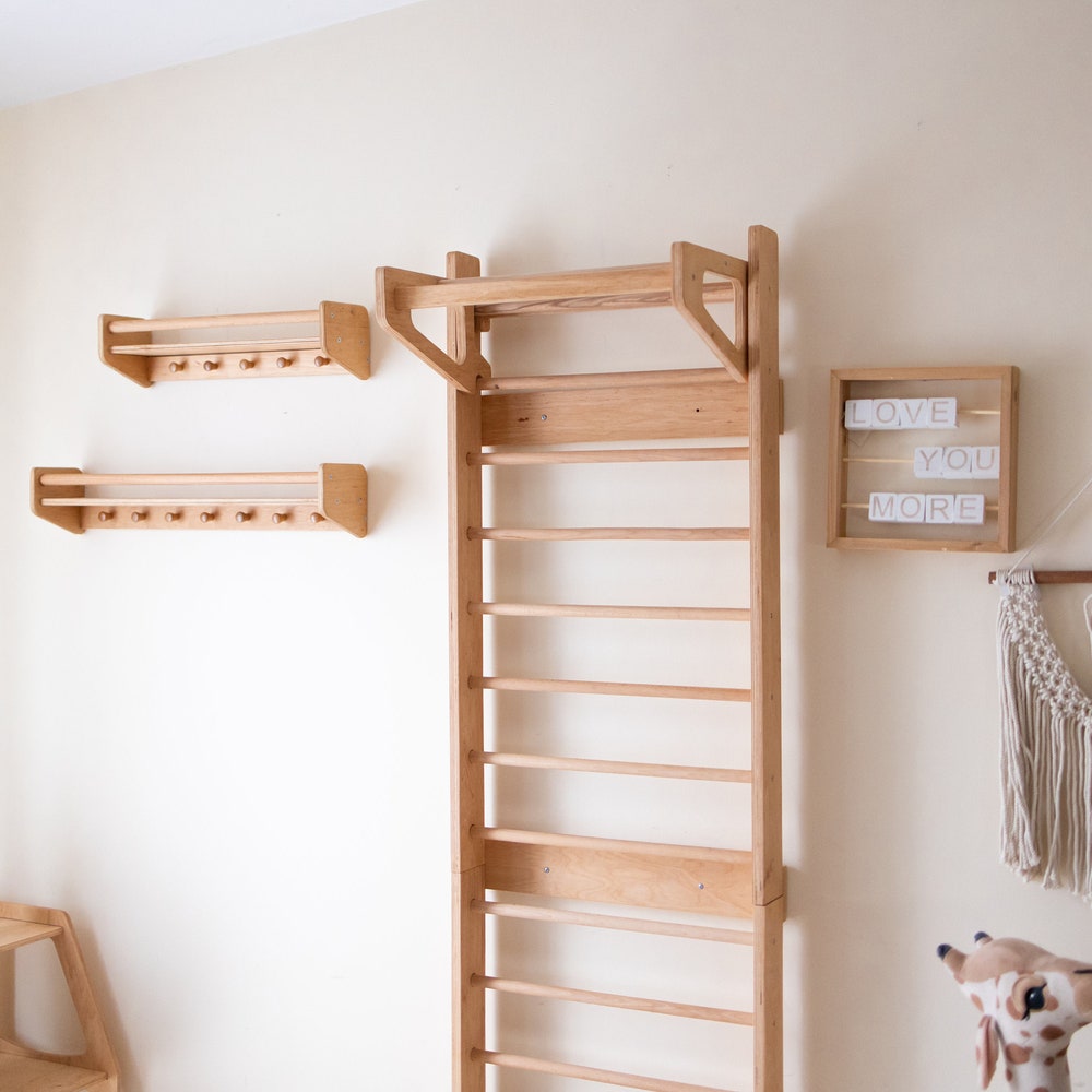 ONE Wooden Climbing Wall with a Set of Wall bars