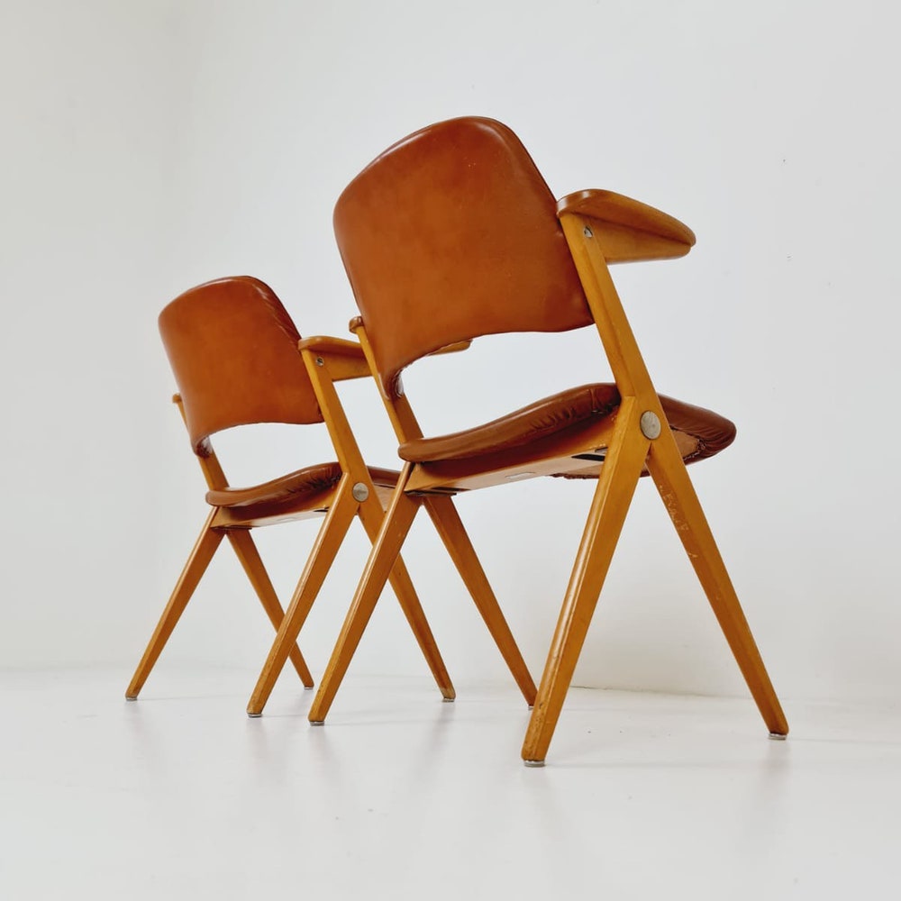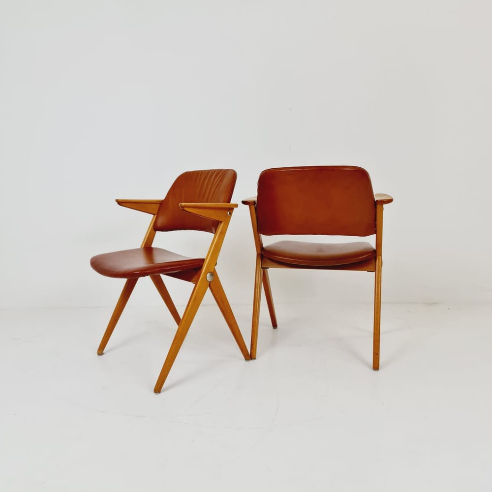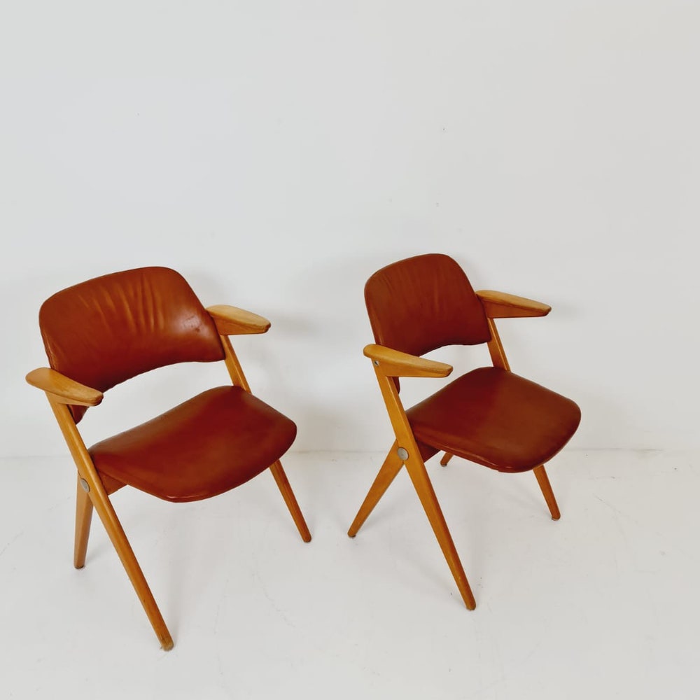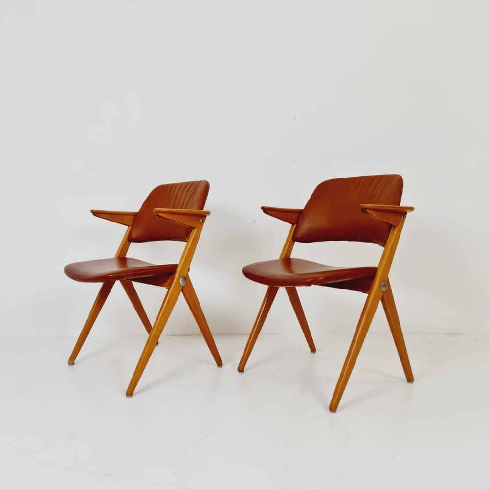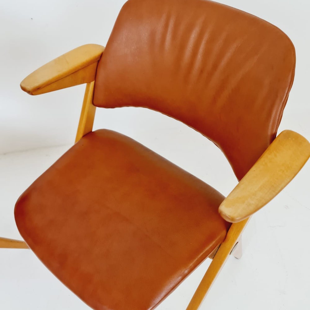 Swedish Midcentury beech & leather armchair Triva by Bengt Ruda for Nordiska Kompaniet, 1960s Price is for both Structure and circular base made of beech, seat and backrest made of leather. In excellent condition, stable with minimal traces of wear. Dimension: Width: 58 cmDepth: 54 cmHeight: 76 cmSeat Height 43 cm Please inquiry for prices […]