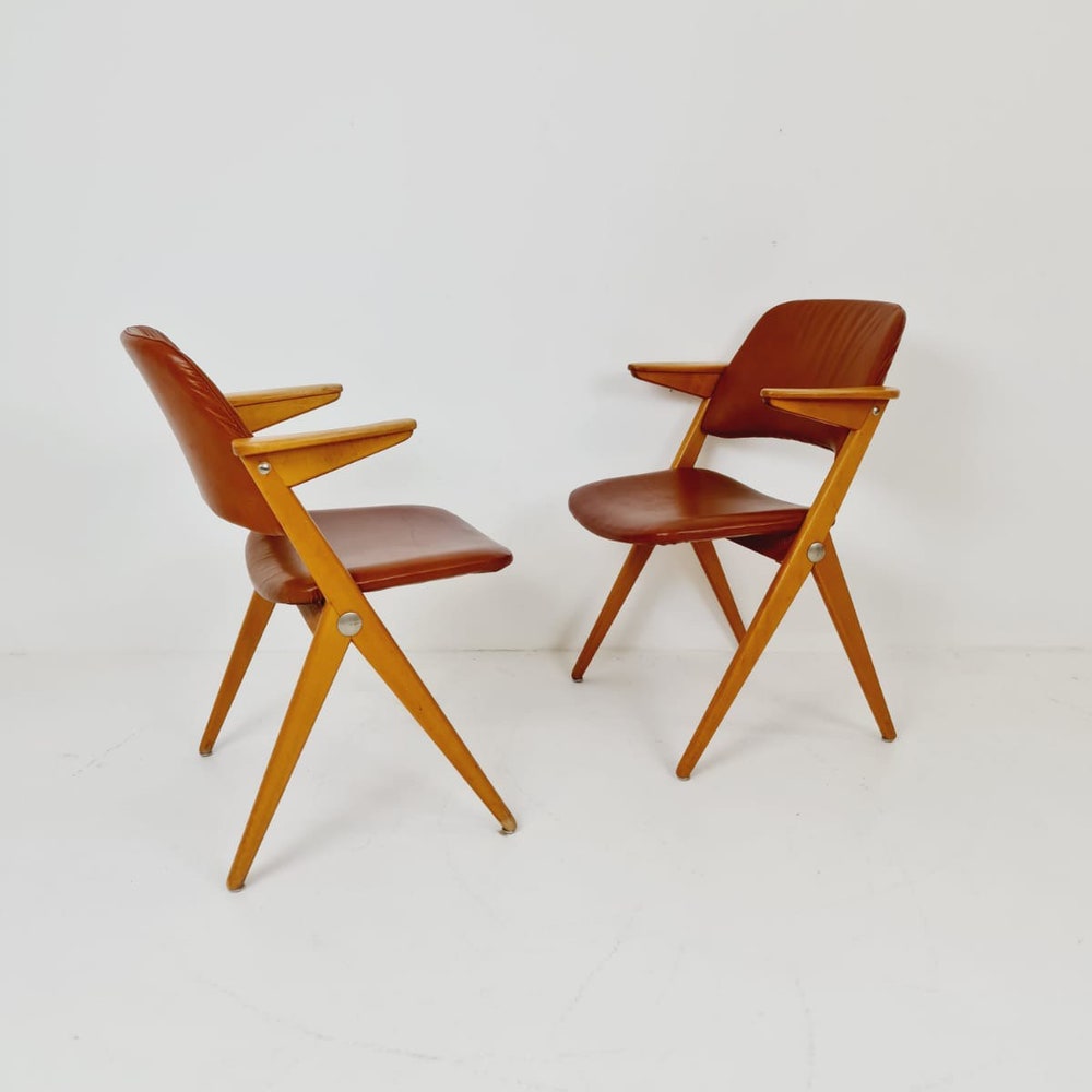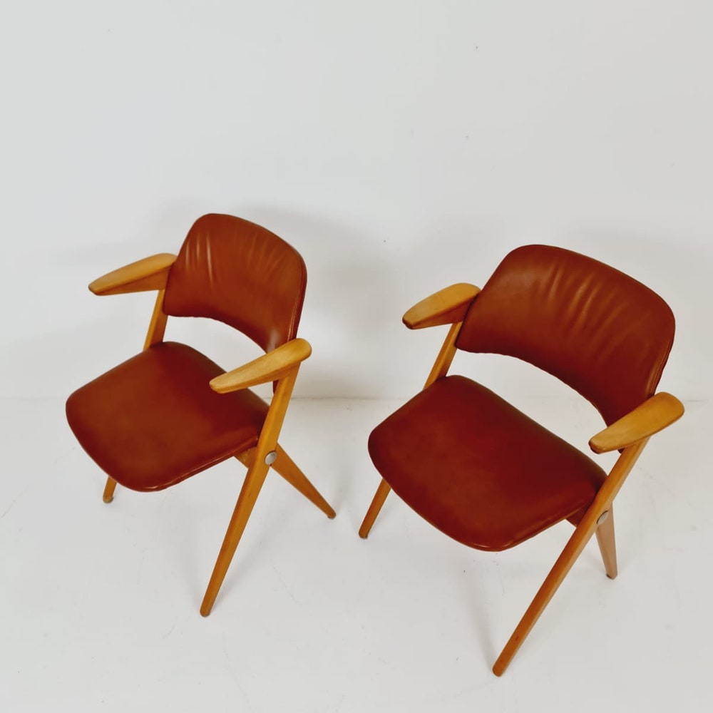 Swedish Midcentury beech & leather armchair Triva by Bengt Ruda for Nordiska Kompaniet, 1960s, set of 2