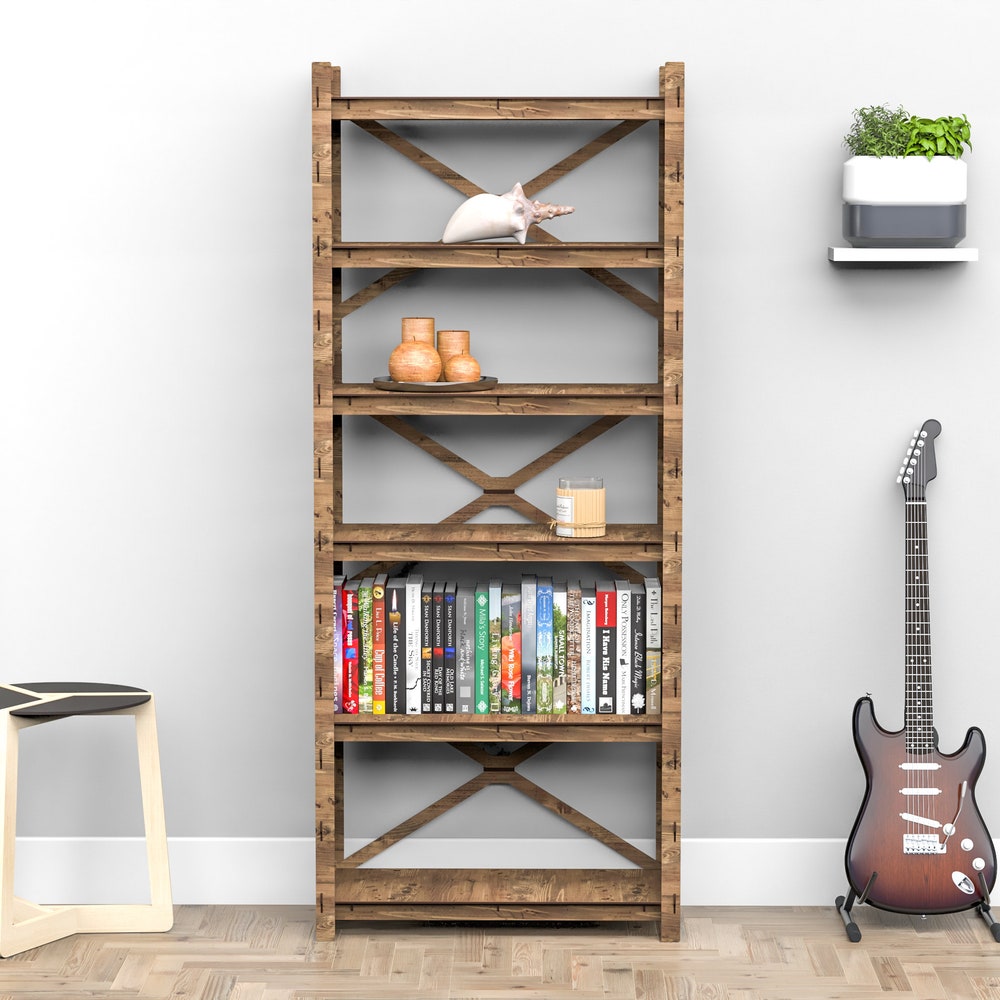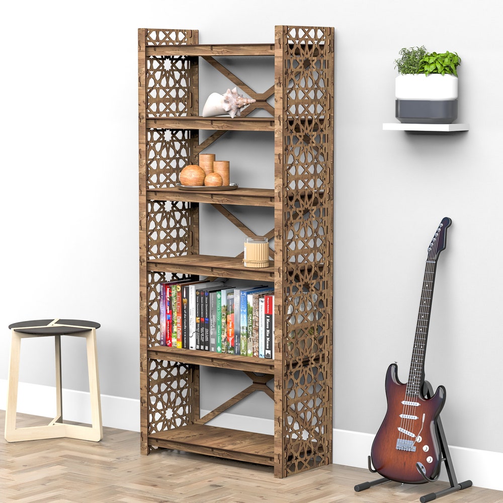Tall Bookcase, Wooden Bookshelf, Etagere, Shelving Unit, Display Case “ARABIC” (72″H 29.5″W)