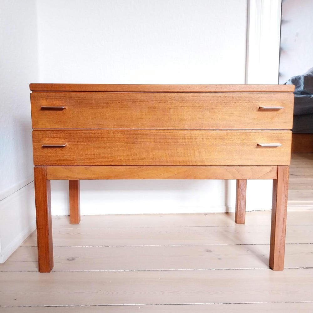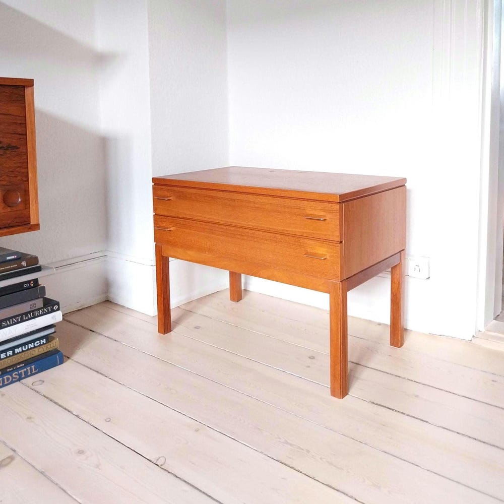 Teak dresser mid century entryway table with drawers vintage teak nightstand Swedish dresser small vintage chest of drawers teak nightstand