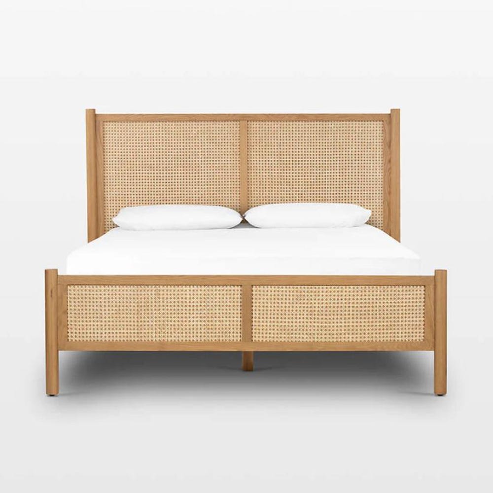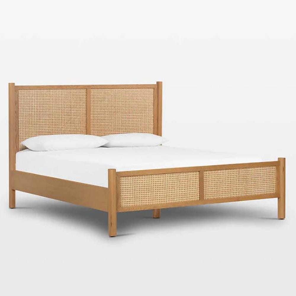 Teak Wood Rattan Bed Frame – Handmade Cane Platform Bed in Twin, Full, Queen, King, Cal King – Boho Japandi Bedroom Furniture
