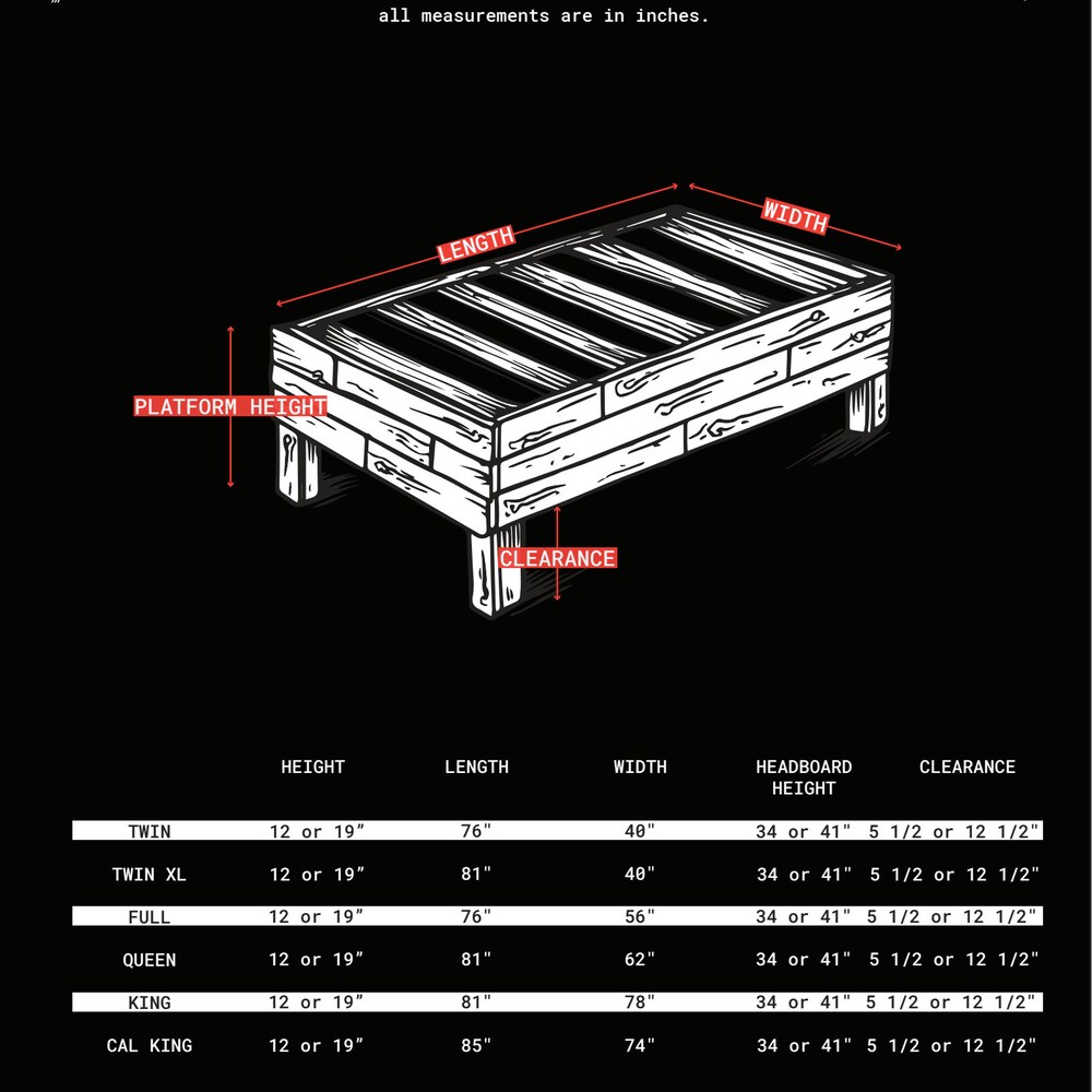 – Headboard comes stock at 28″ tall (top of the mattress up)