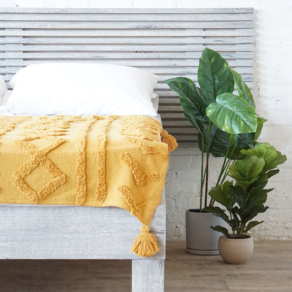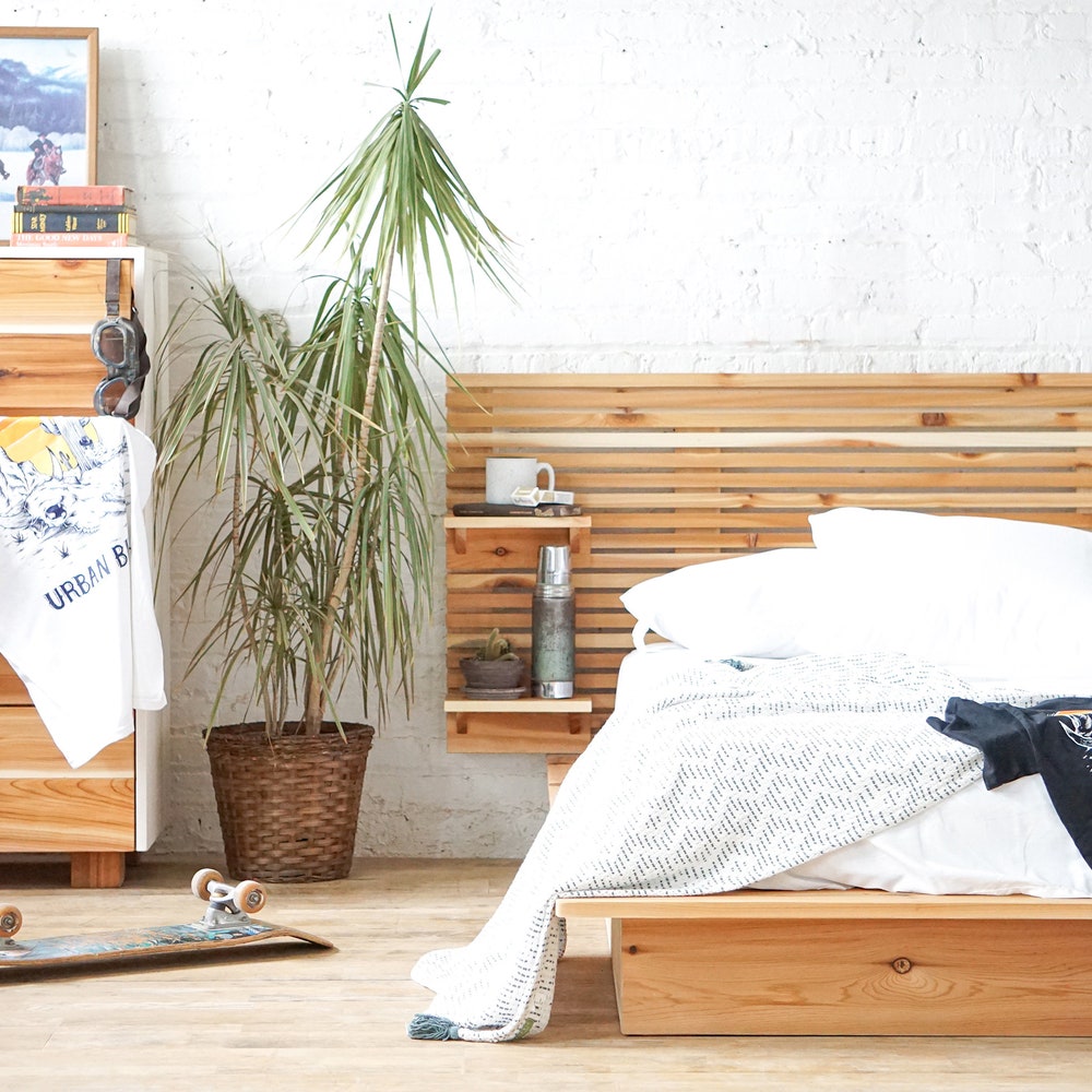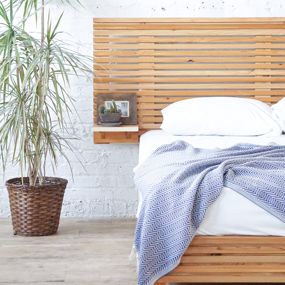 The Big Carolina headboard for comfort living. The awesomeness just keeps getting bigger. We took our popular Carolina fluted headboard and expanded to allow for sleek yet minimalistic floating shelves on both sides.