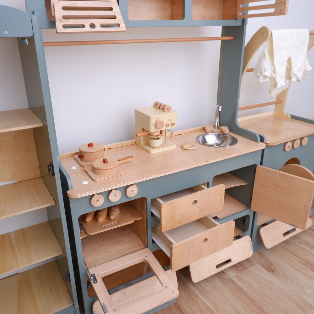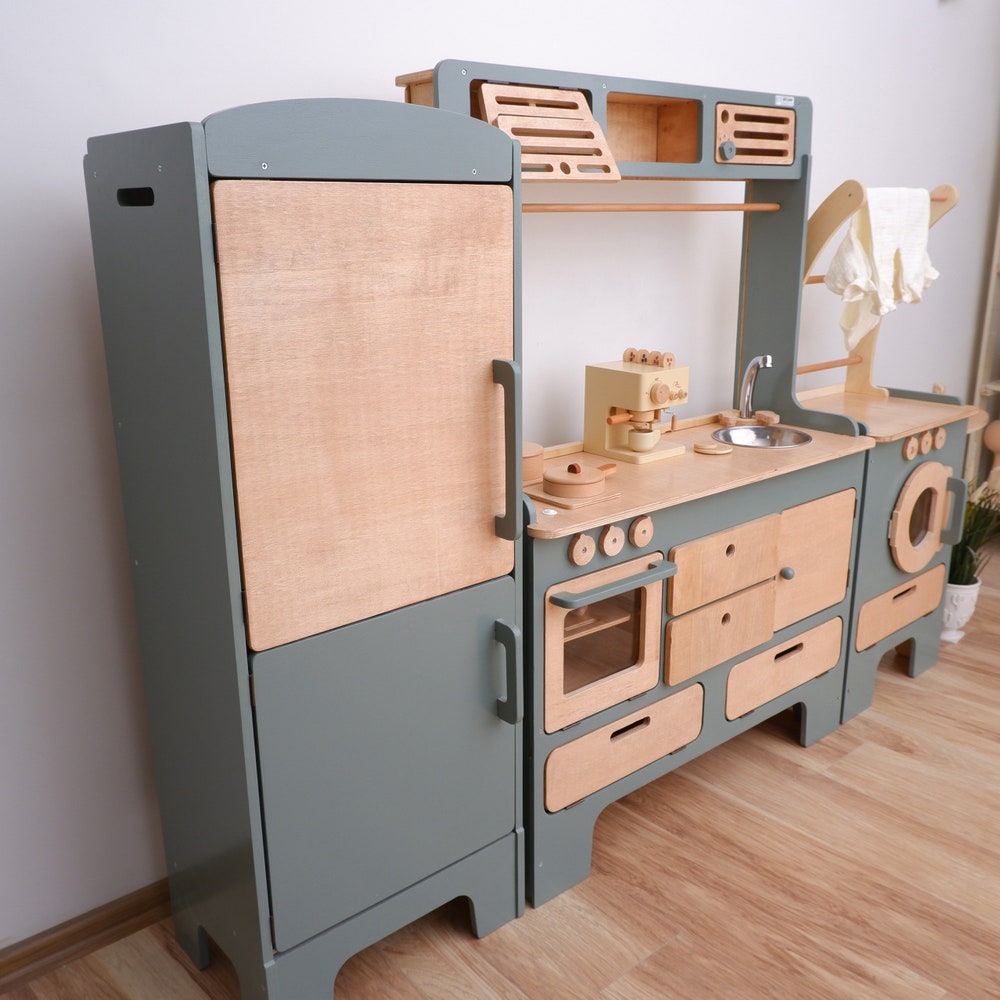 The biggest play kitchen for 10 year olds | Handmade Customizable Wooden Play Kitchen for 10 Year Old Kids | Green and Wood