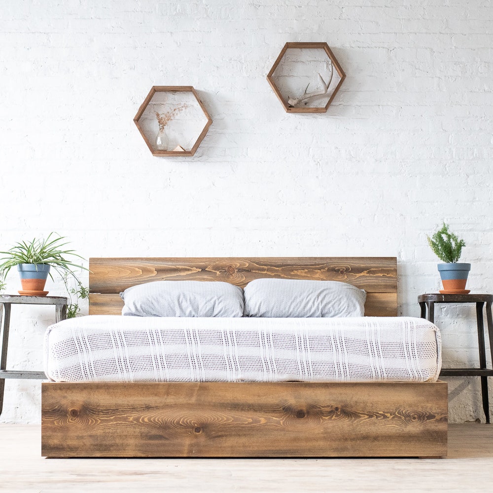 The Butte – Rustic Modern Platform Bed Frame & Headboard – Loft Style – Solid Wood – Handmade in USA