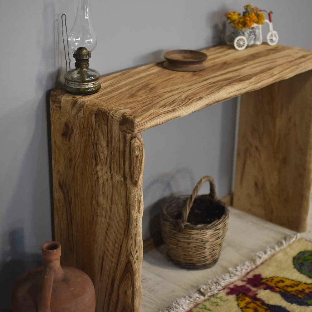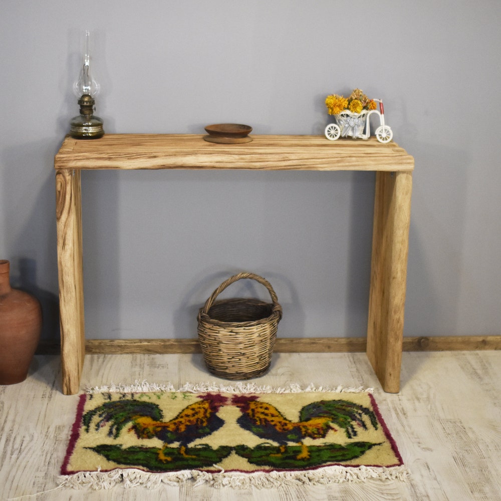 This exclusively handmade natural rustic console table is a stylish furniture to enhance the decoration of your living room, entryway or anywhere you wish it to be.
