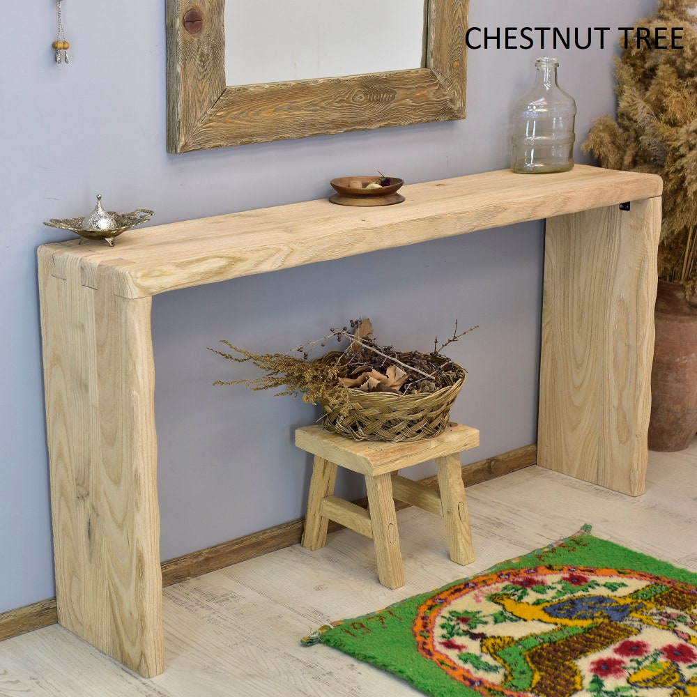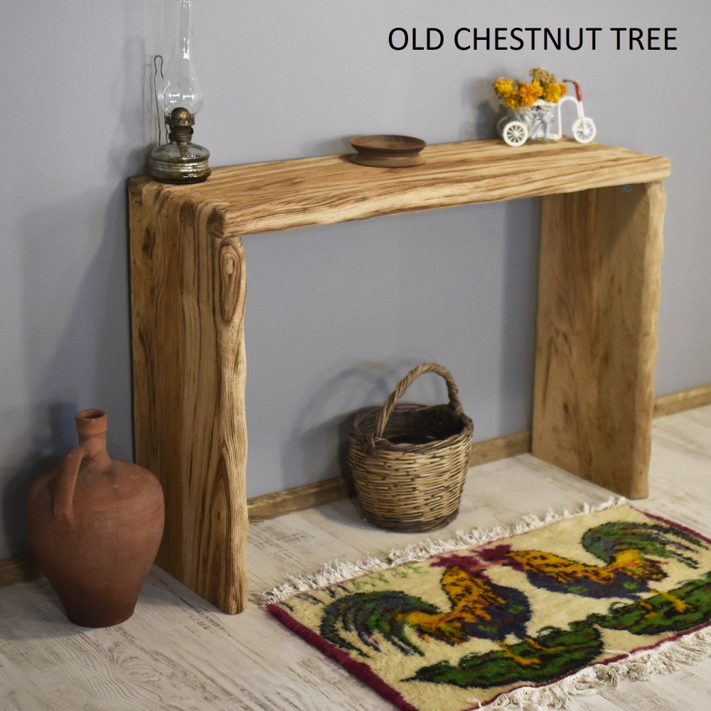 The dresser console table is medieval handcrafted from chestnut wood, rustic hallway furniture entry live edge entry table gift for women.