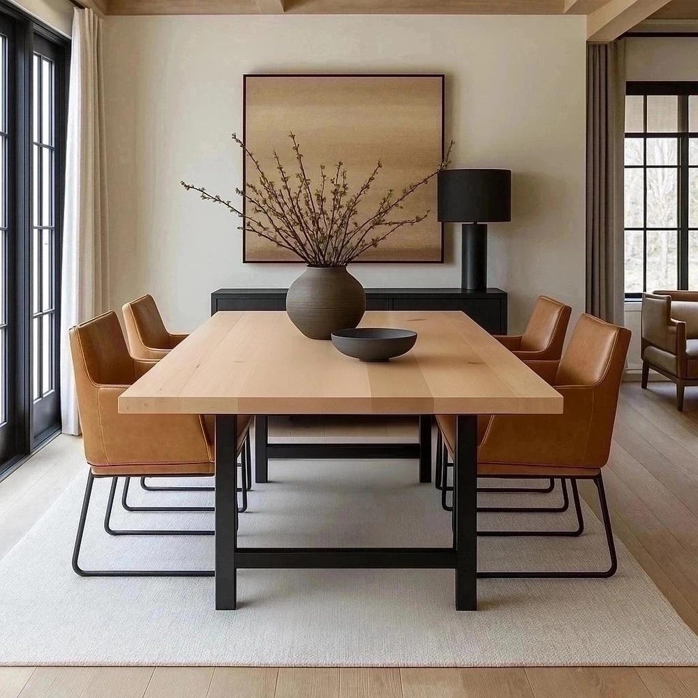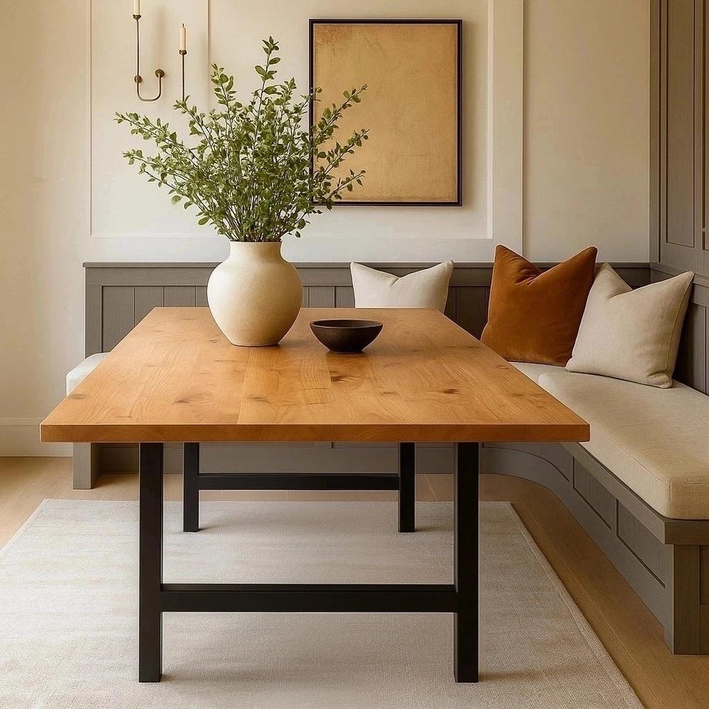 Handcrafted Family Style Maple Dining Table, A-Shaped Metal Legs, Custom Made Modern, Contemporary, or Farmhouse Maple Dining Table, Made to Order, Modern Farmhouse, Solid Wood, Wood Furniture, Handmade, Handcrafted Dinner Table, Dining Table, Kitchen Table, Farmhouse Table, Wood Dining Table, Made in the USA, Farmhouse Kitchen, Dine Table, Maple Dine Table