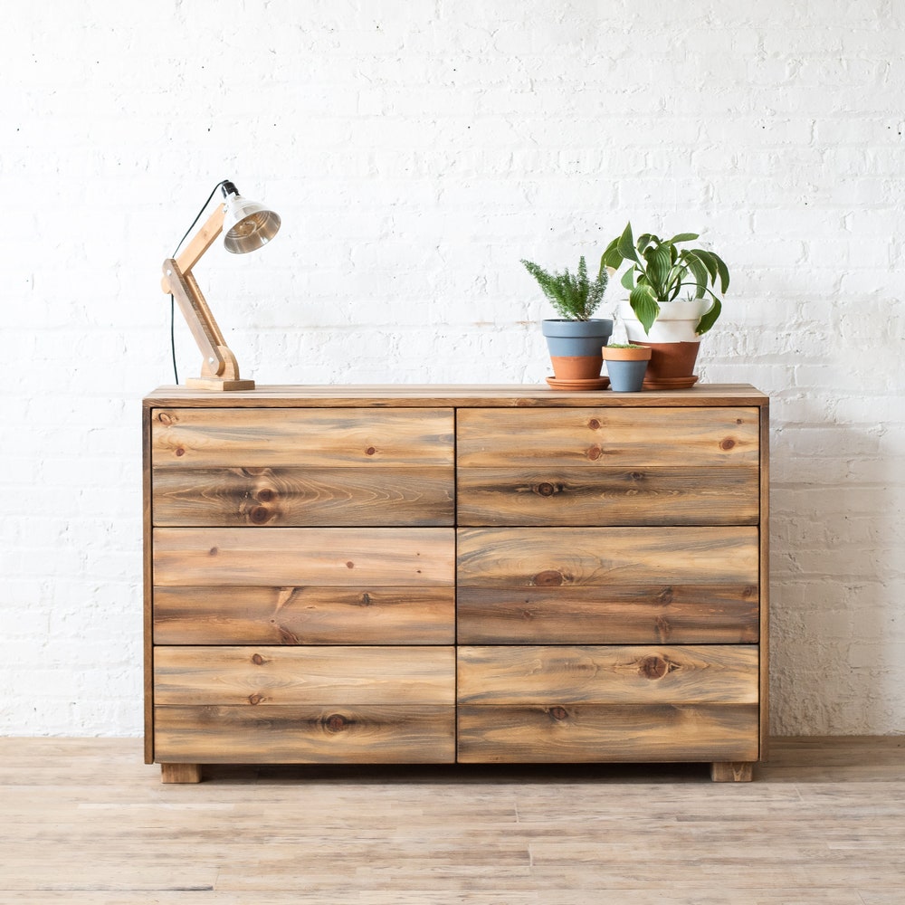 The Homestead Six Drawer Dresser makes storing your clothes look good. This dresser is a statement piece, a beautiful addition to your room. It’s made to last for generations to come. Designed and handmade by Urban Billy craftsmen.