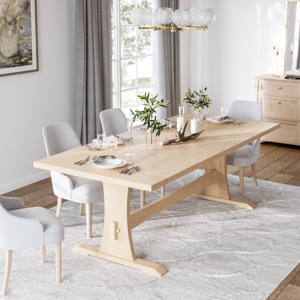 The Rowland Maple Table, Trestle Dining Table, Family Size Trestle Table, Solid Wood Trestle Table