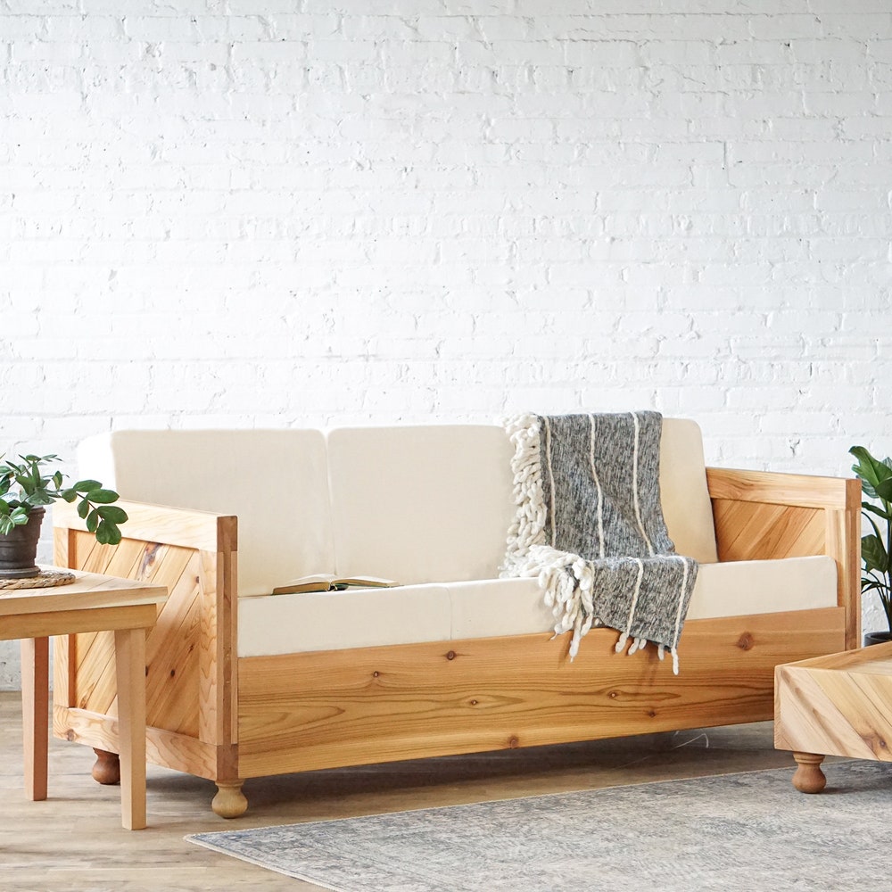 Introducing the Settler Sofa, inspired by the desire for comfort, style, and the kind of craftsmanship you can only find in one place, Urban Billy. Using American farmed and American spun organic cotton. The perfect cushioned comfort addition to any room, bring home the Settler Sofa and kick your feet up.