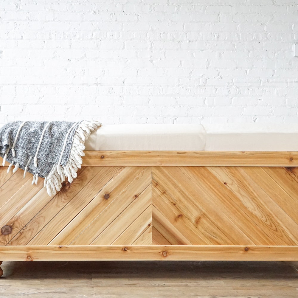 Bed frame Queen for House Warming Gift – King Bed Frame for Farmhouse Decor – Chevron White Oak Bed Frame – Handmade Furniture Platform Bed