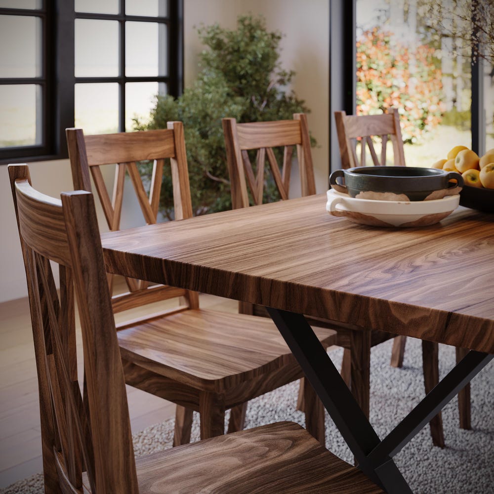 The Welker Walnut Dining Table is handcrafted by our team of woodworkers in Pennsylvania using locally sourced solid black walnut lumber and powder coated steel legs.