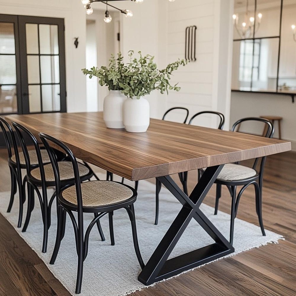 Custom Walnut Dining Table – Handcrafted Solid Wood Kitchen Table, Modern Rustic & Contemporary Design, Unique Wood Furniture