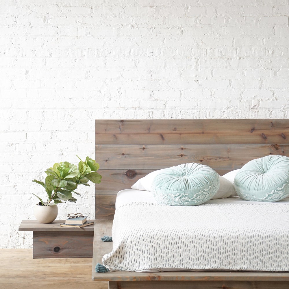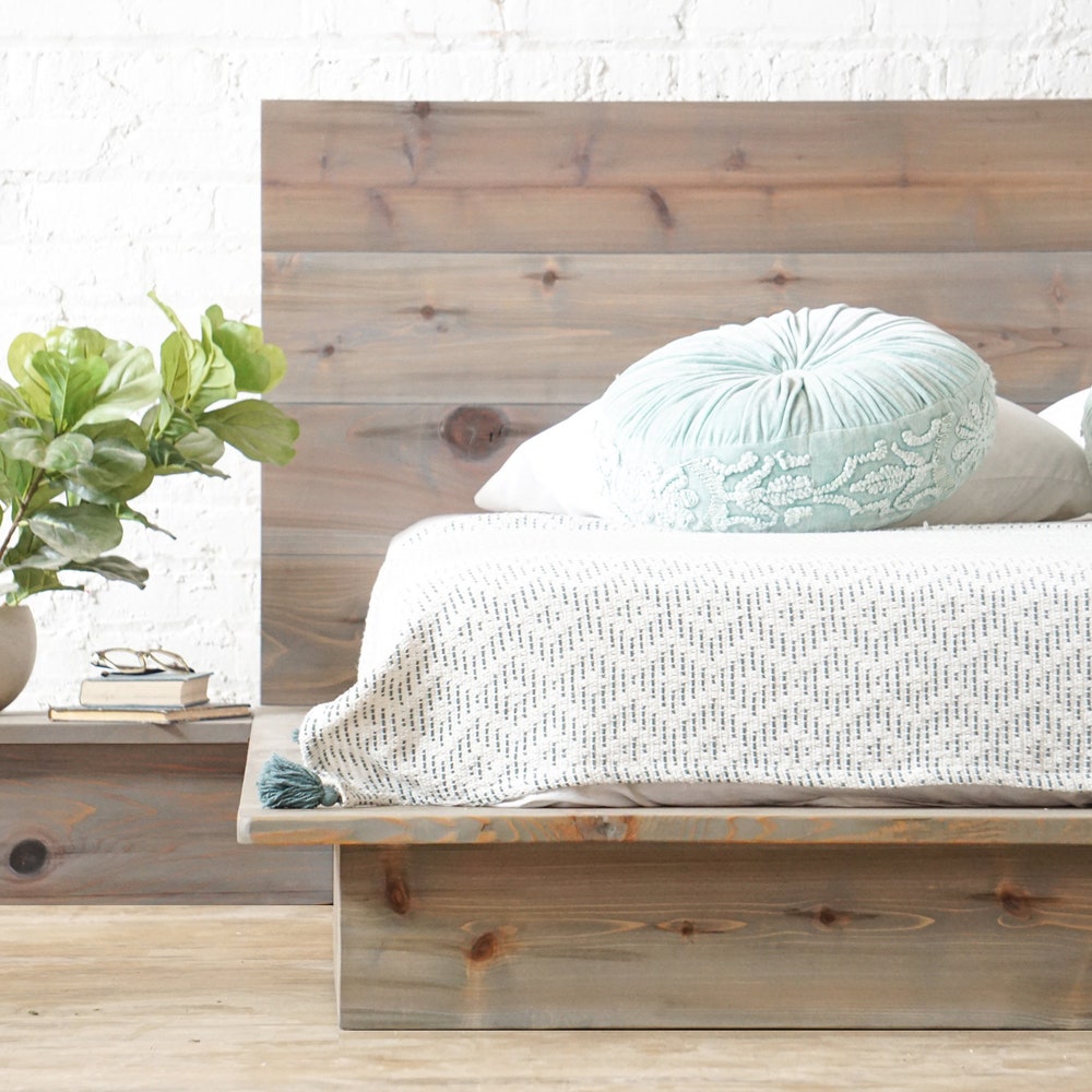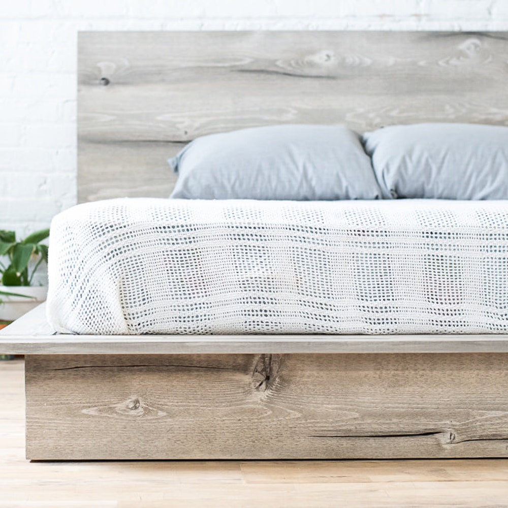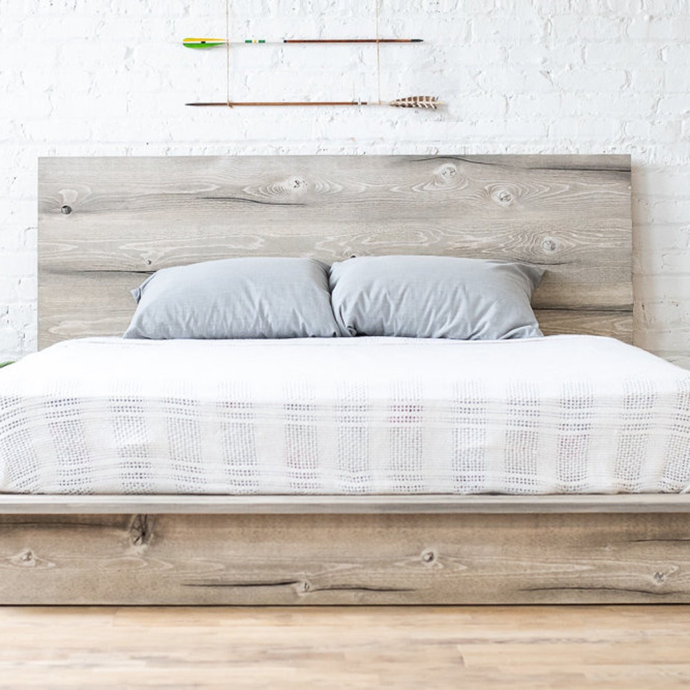 The Woodland – Platform Bed Frame and Headboard – Rustic Modern – Loft Style – Natural Solid Wood – Handmade in USA
