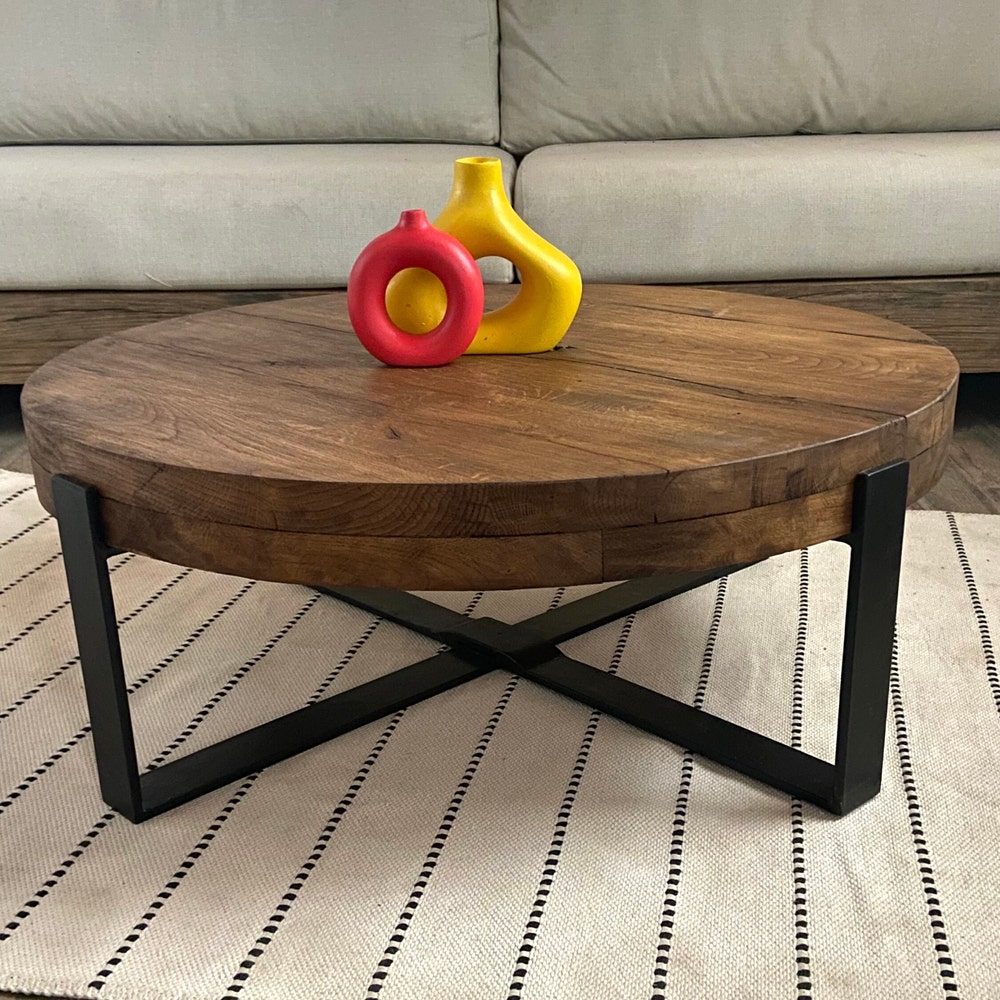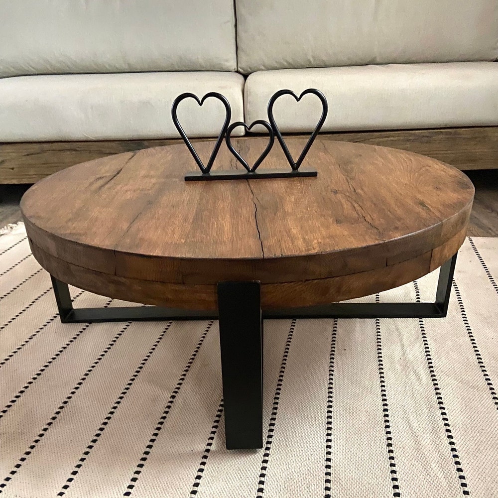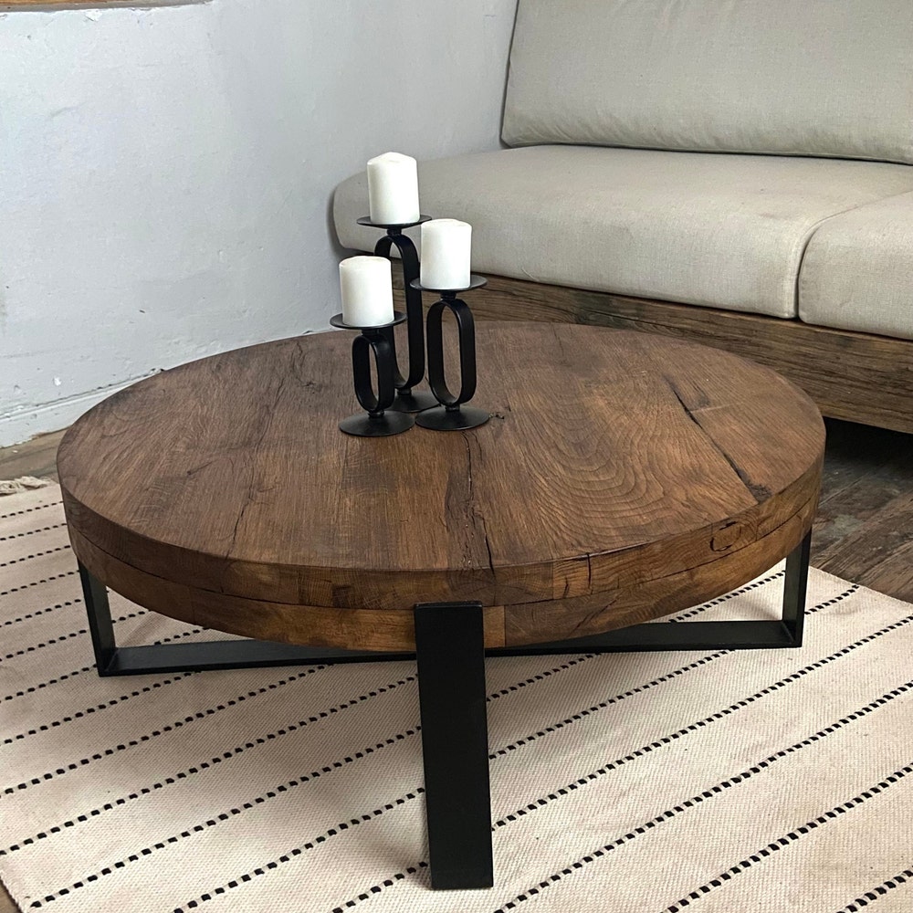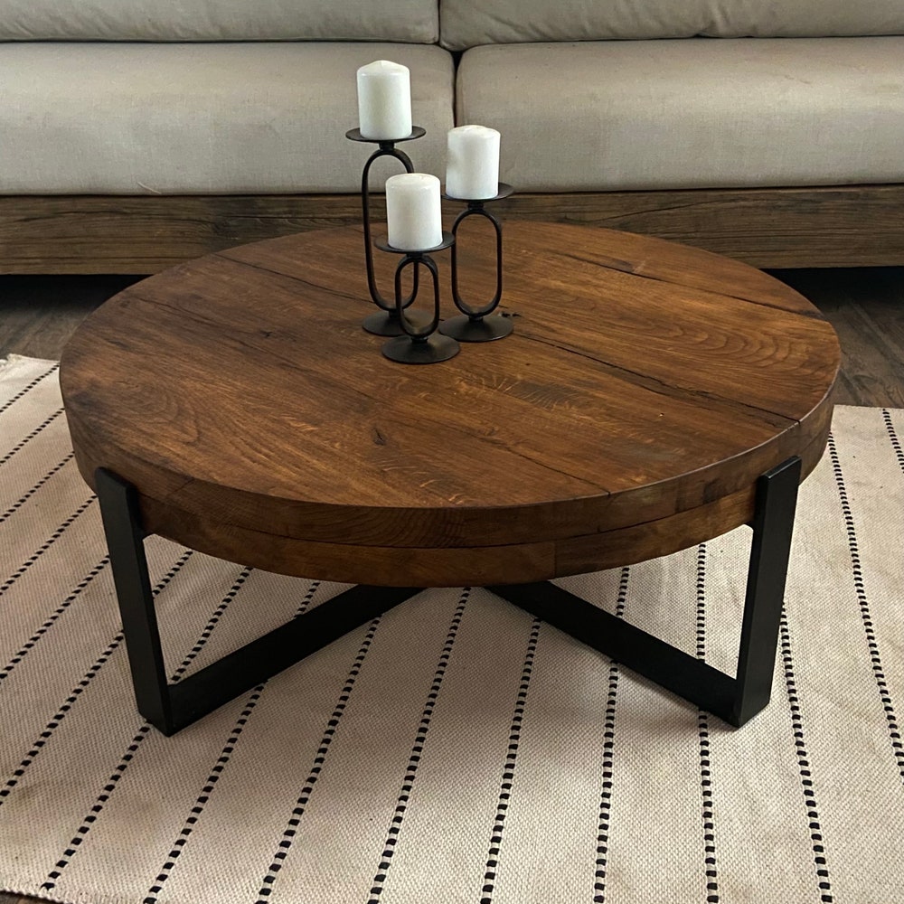 Thick Round Wood Coffee Table Legs Metal, Round Low Coffee Table, Rustic Coffee Table Oak Furniture