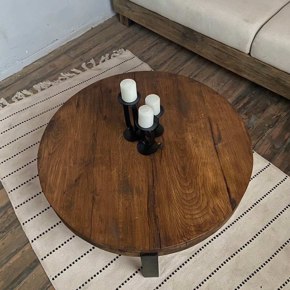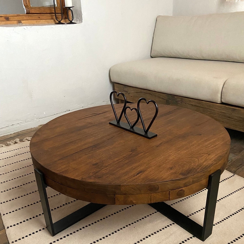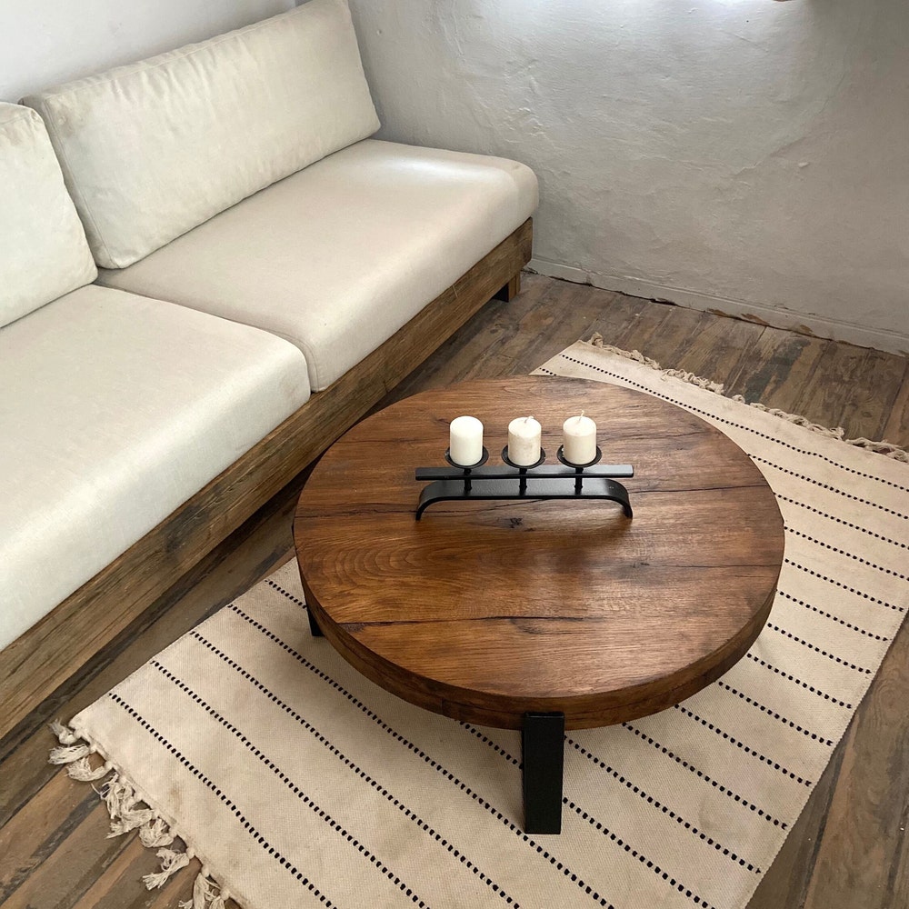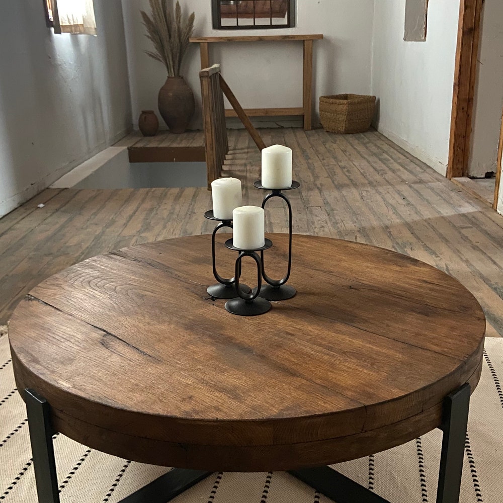 Thick Round Wood Coffee Table Legs Metal, Round Low Coffee Table, Rustic Coffee Table Oak Furniture
