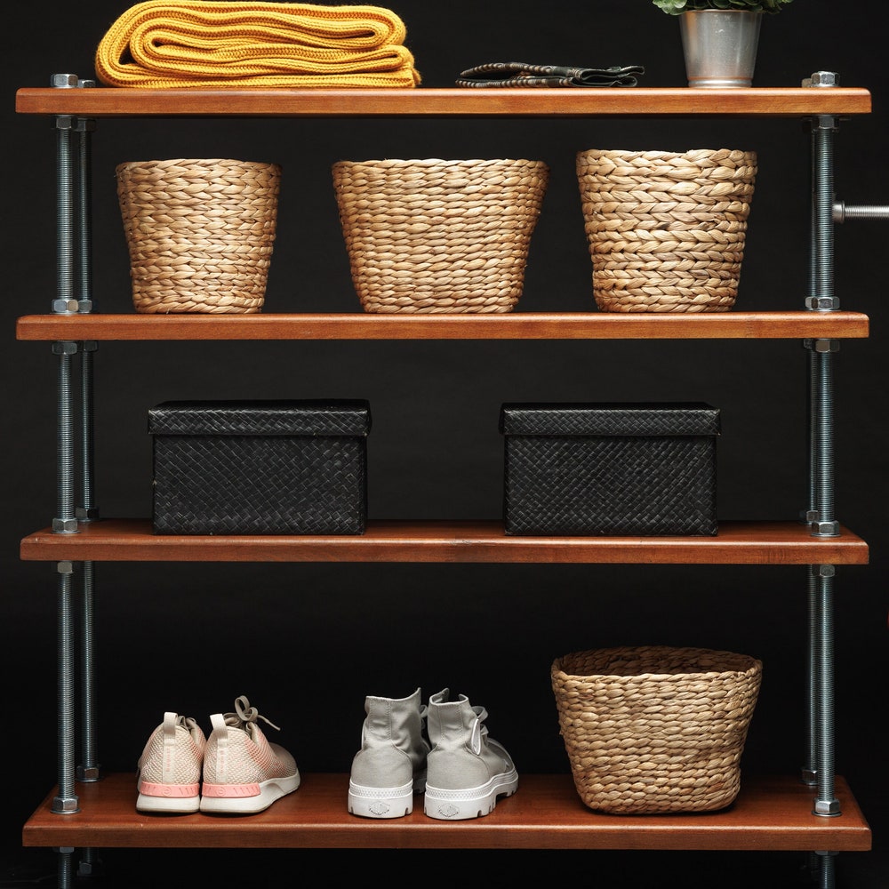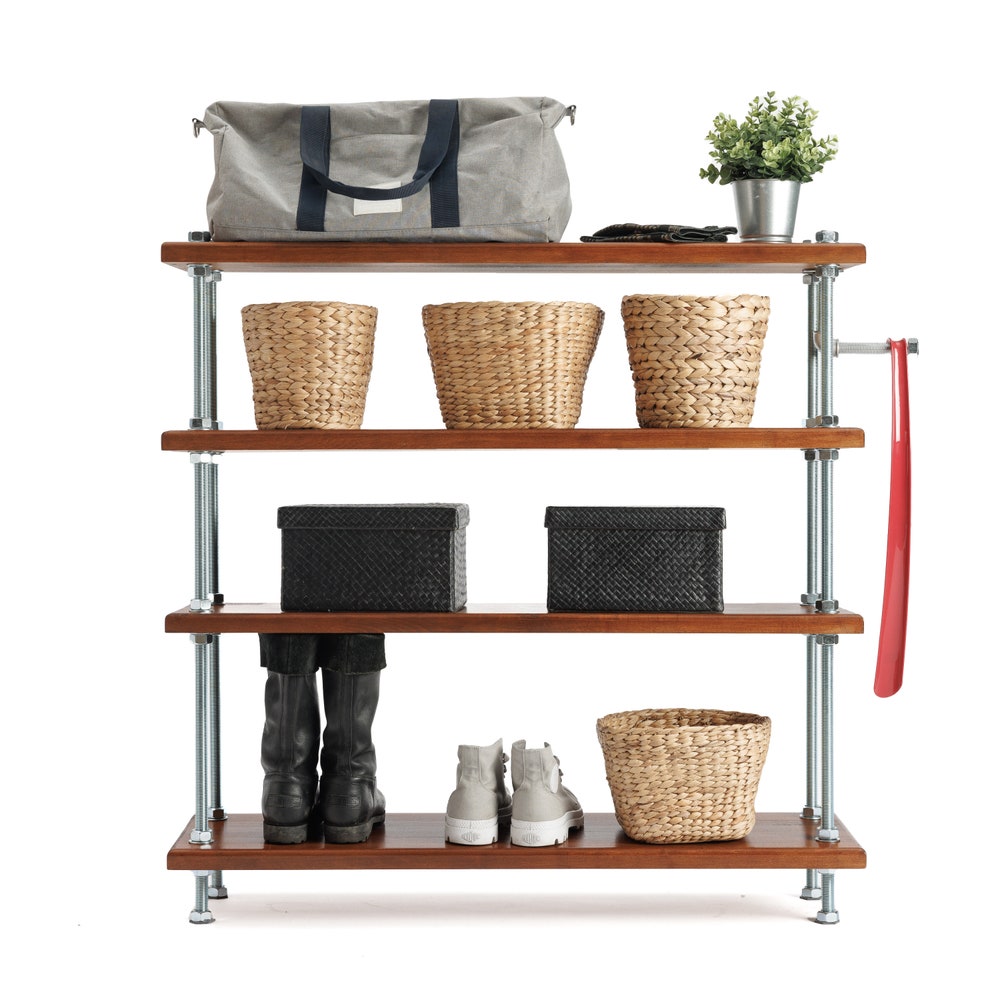 Simple aesthetic design this what makes these shoe rack/media console catch the eye. Beautiful and sturdy shoe rack made of wood and threaded rod M20.