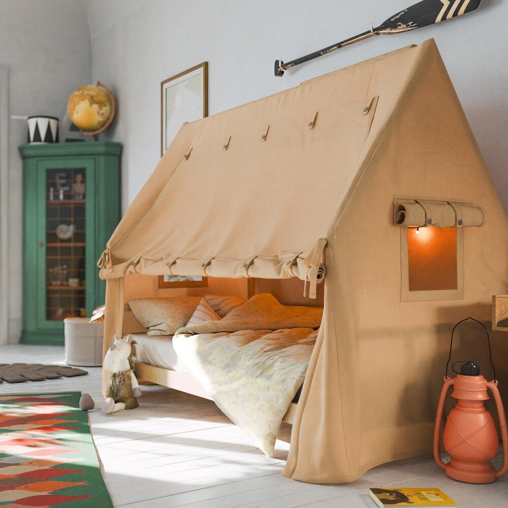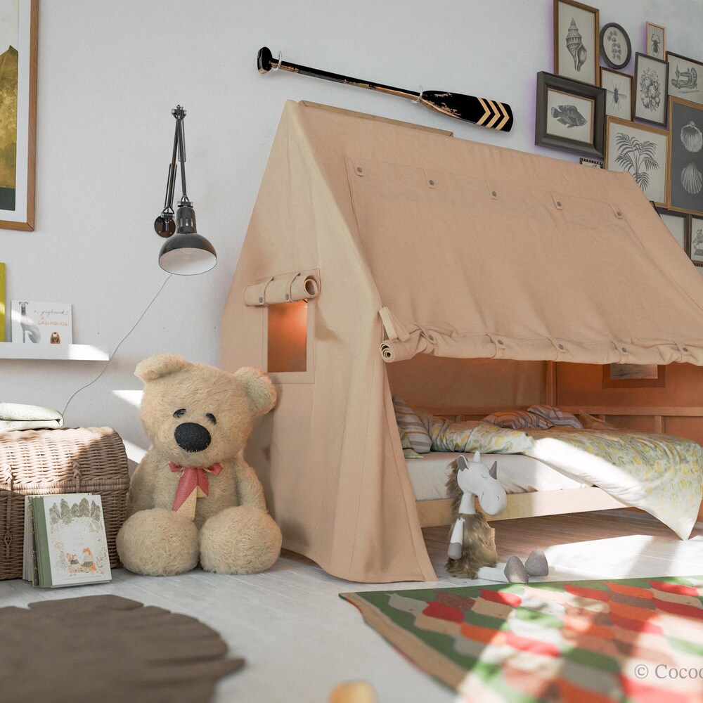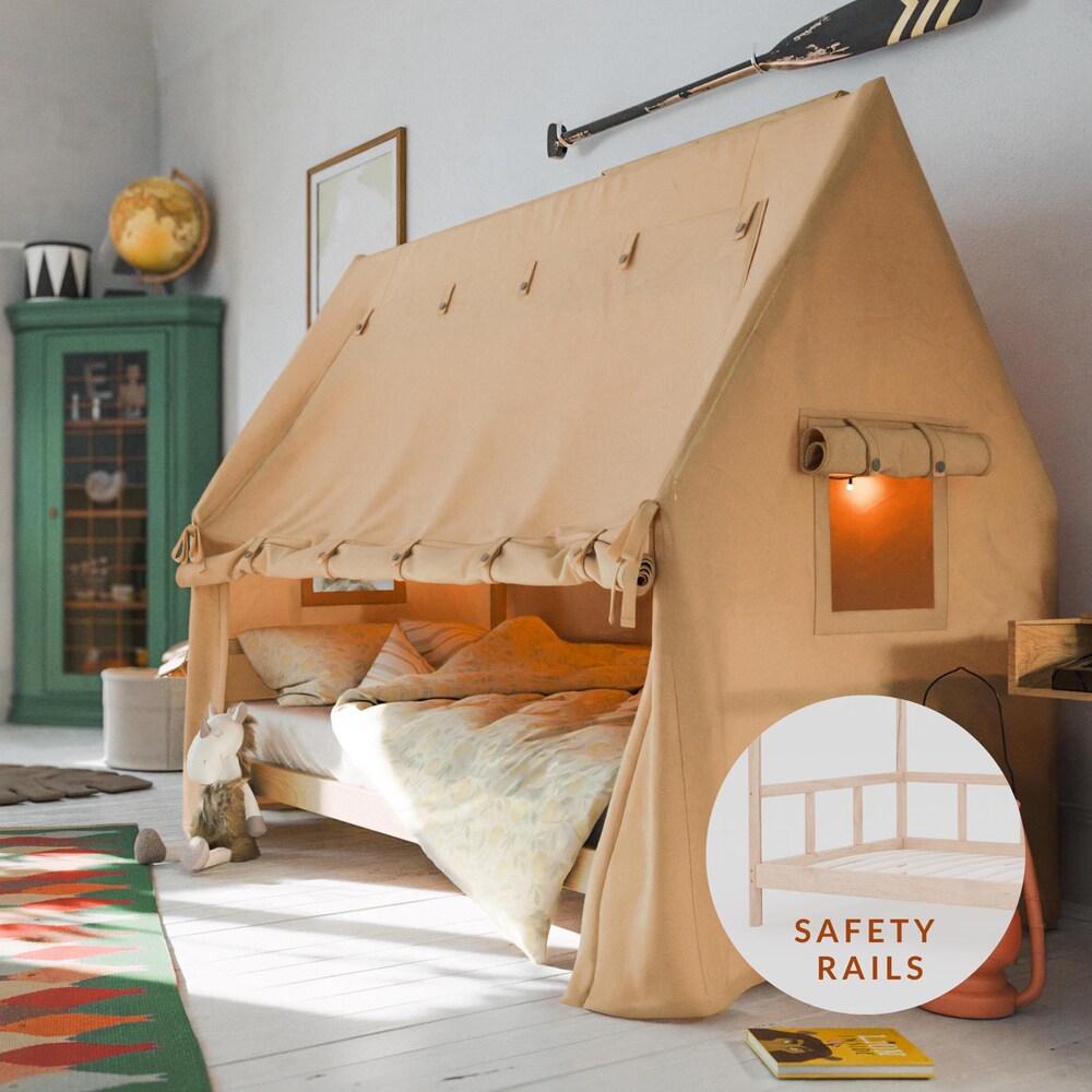 Crafted from solid natural alder wood, this toddle Beige Canopy Bed is designed to support independence and creativity, making it perfect for toddlers and young kids.