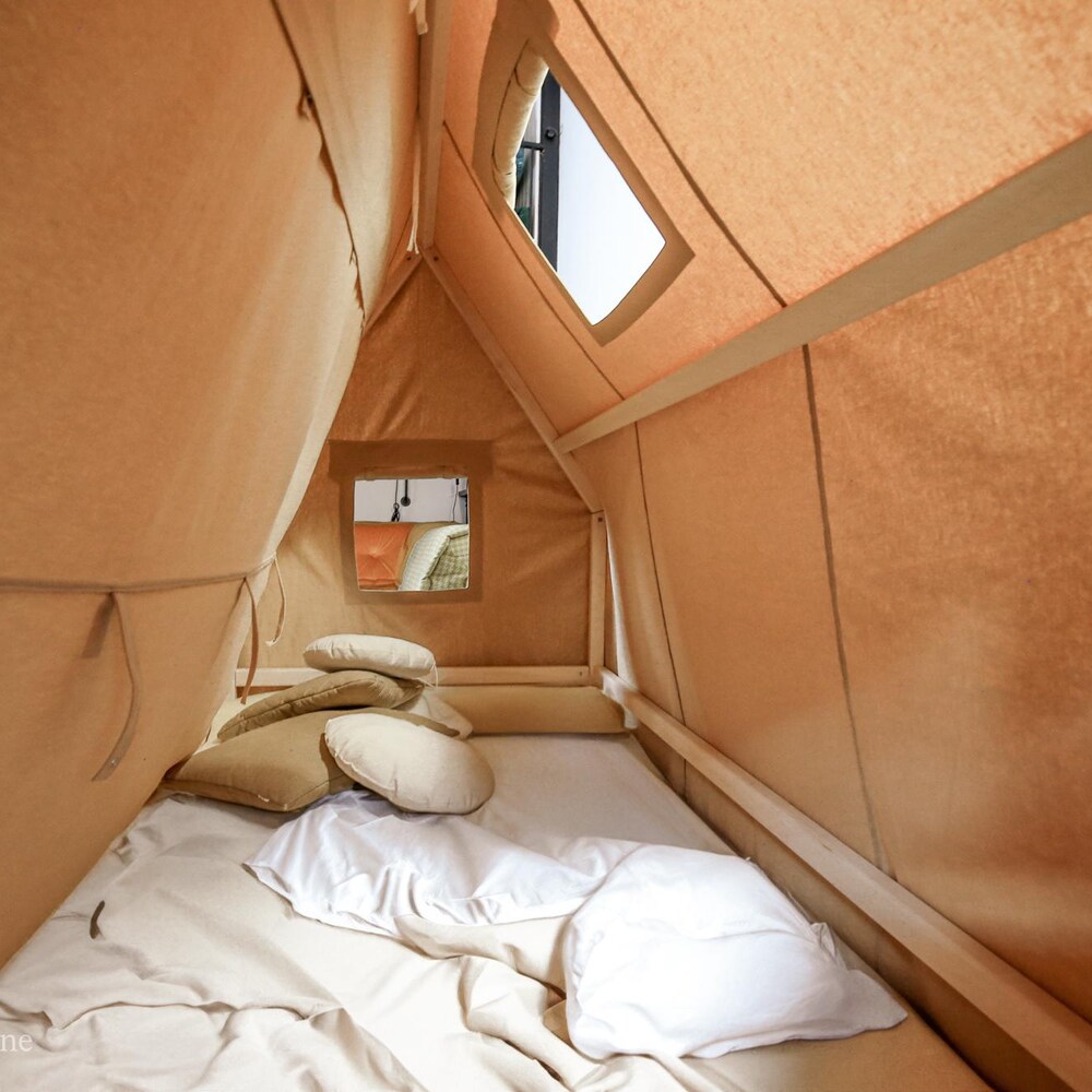 Made from dense, 100% cotton fabric, it includes two side windows, a roof window (all with curtains), and an adjustable front door curtain with three positions — a magical little house for your child.
