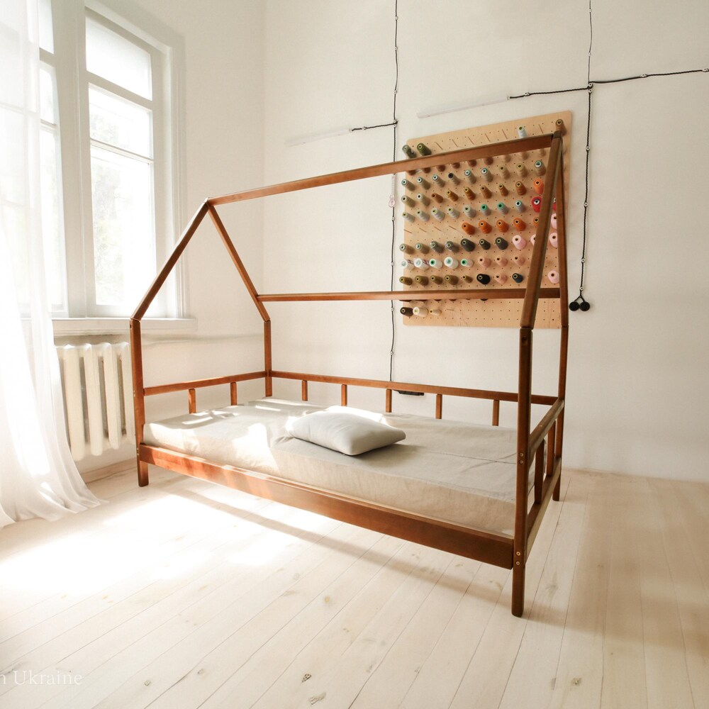 Toddler Bed with Canopy & Safety Rails – Solid Wood Nursery Playhouse Bed, Handcrafted Kids bed, Play bed, Solid wood bed, Eco furniture