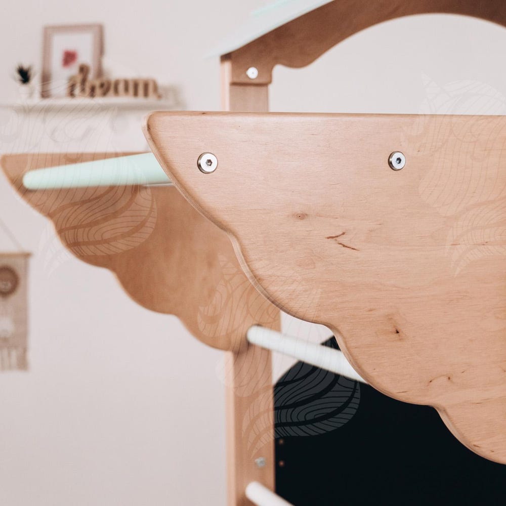 This beautifully crafted wooden indoor playground is perfect for children aged 1-6 years, combining fun, safety, and developmental benefits. Designed with Montessori principles in mind, it fosters physical growth, imaginative play, and confidence in a safe environment. A creative space for drawing and doodling, encouraging artistic expression. An adjustable Horizontal bar can be attached with wing hooks at different heights, giving kiddos even more comfort in using.