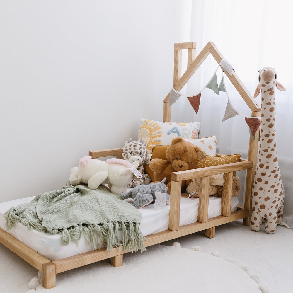Toddler Floor Bed, Montessori furniture, House Bed Frame, Nursery playroom decor, Kid Bedroom Furniture, Wooden Baby Bed, Indoor playhouse