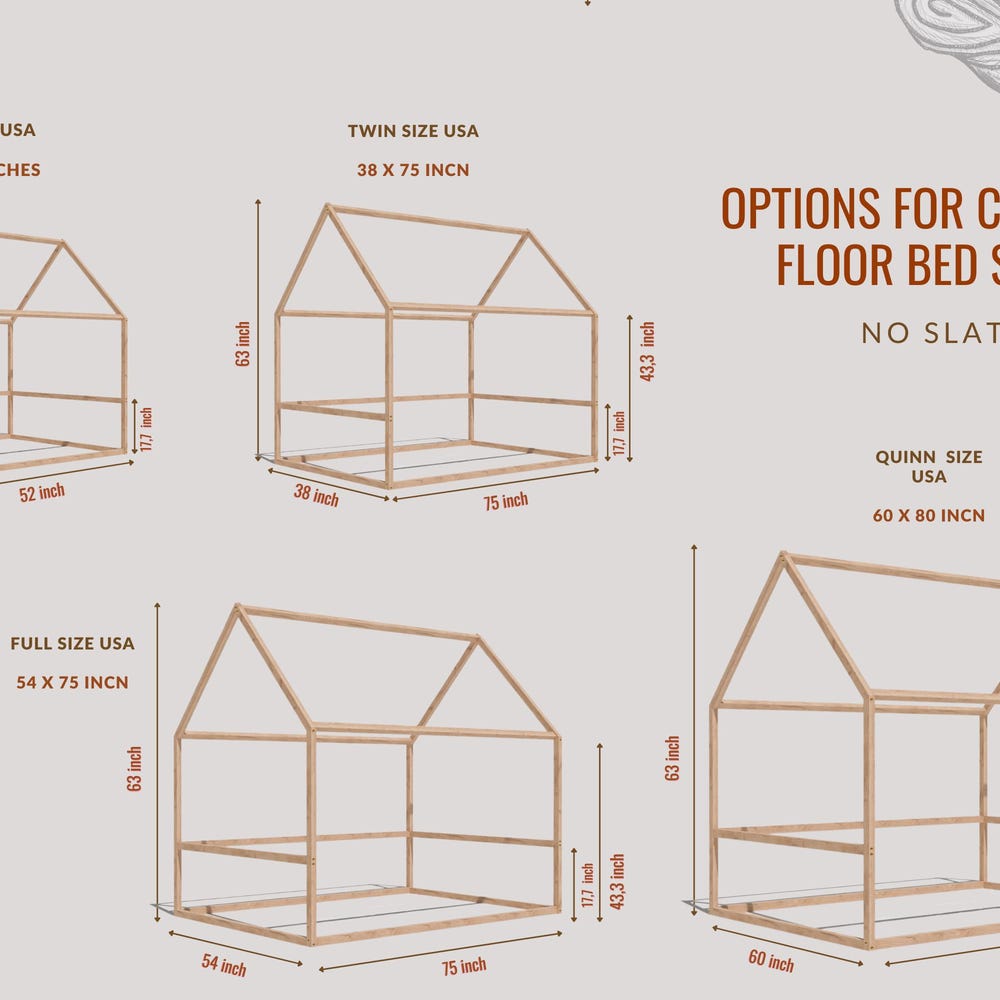 | Bed Frame + Slats + NO Slats | Crib 52 x 27.5 in, Twin size 75 x 38 in, Full size 75 x 53 in, Queen 80 x 60 in, 140 Х 200 см |