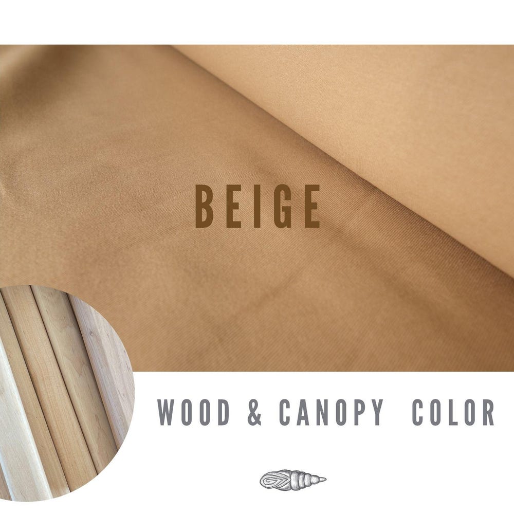 ✔️ The Full size bed and Beige color CANOPY and Natural wooden frame is shown in the photo of the listing.
