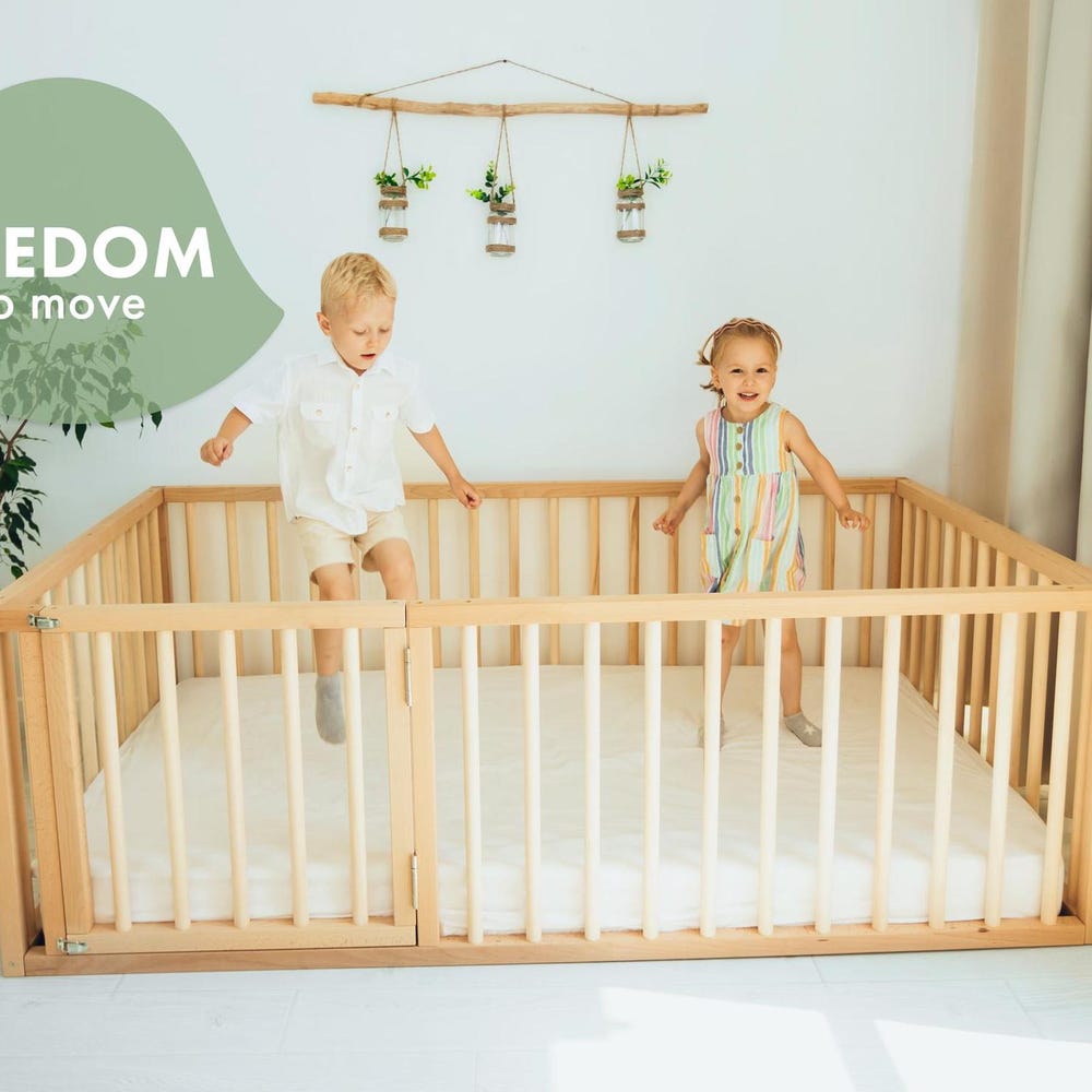 Toddler Play Bed with Safety Features, Montessori Floor Bed, Toddler Playpen, Kids furniture, Nursery Bed, Baby play pen, Baby gate