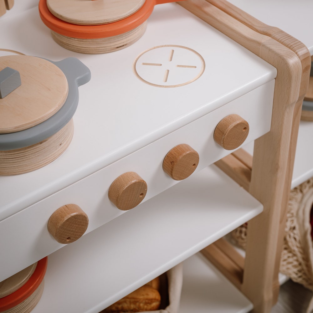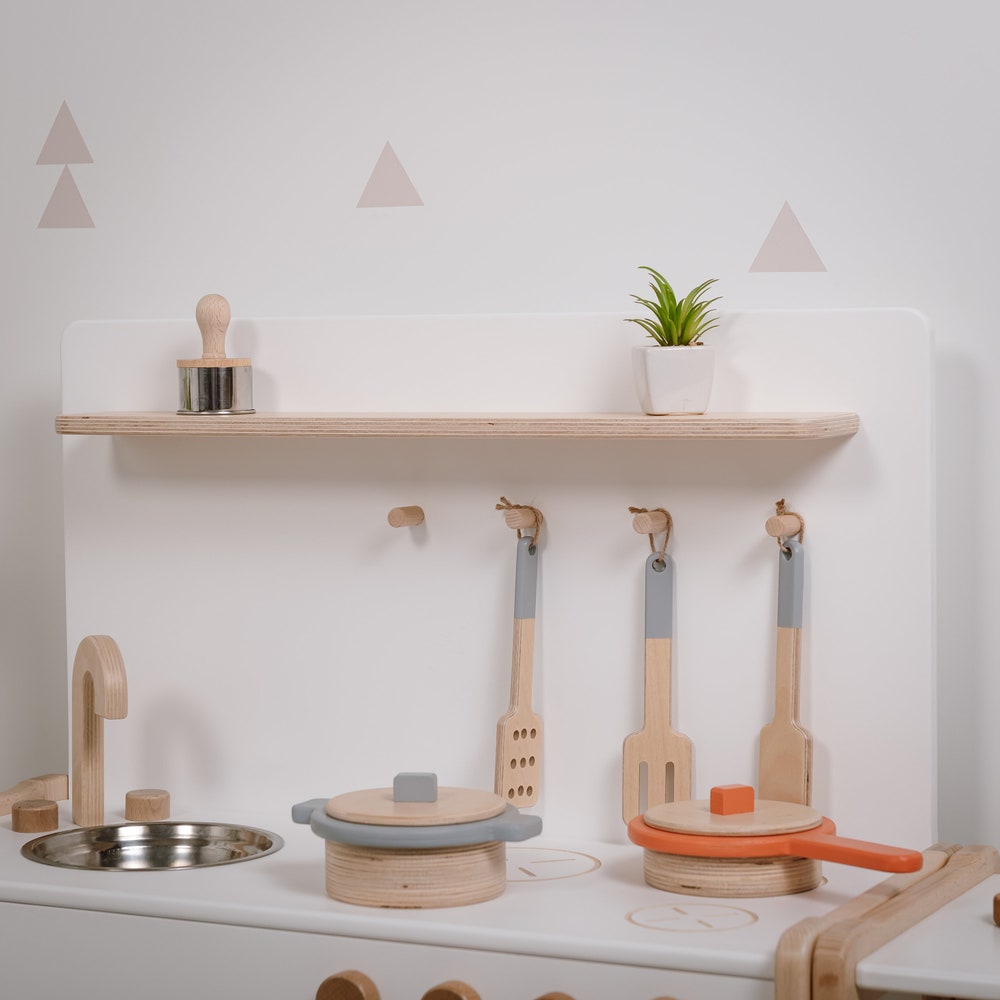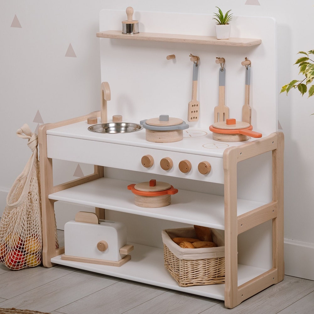 Toy Play kitchen by Woodjoy TypeB2 combined with a SMALL shelf Pretend Play, Gift for Kids Baby registry item Gift for kids