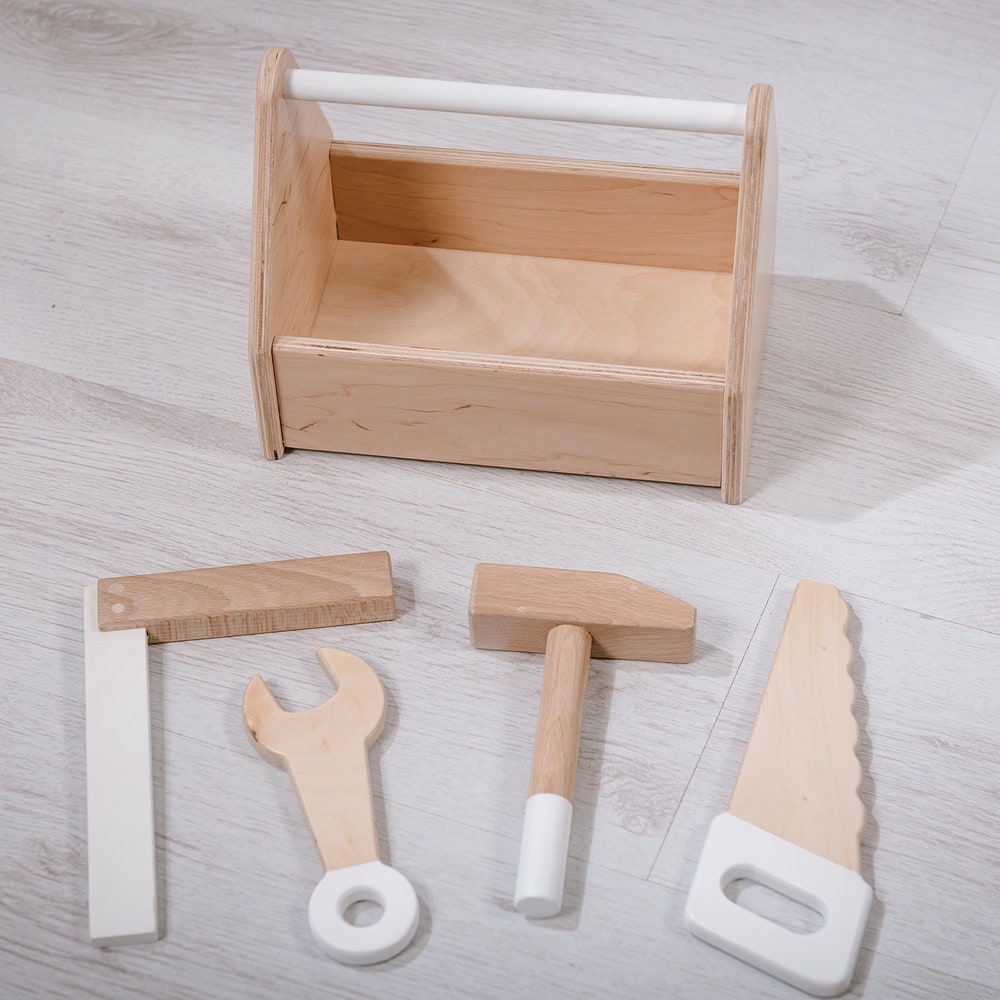 Crafted from high-quality birch plywood, the Tool Box is finished with water-based, non-toxic paint. We prioritize safety and sustainability, ensuring that your child can play and learn with peace of mind.