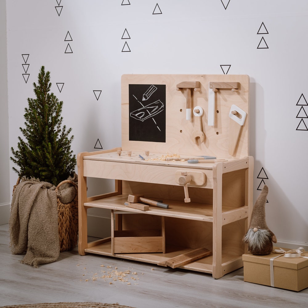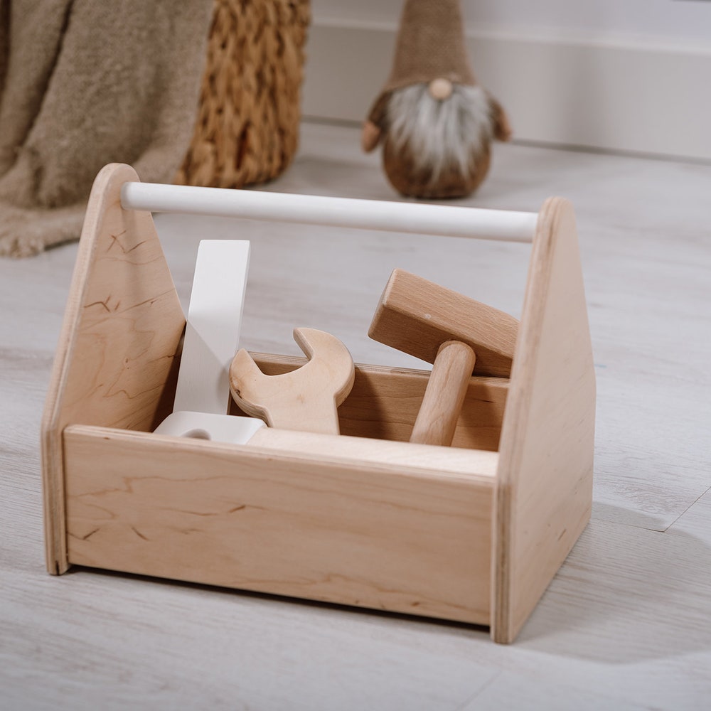 Toy Tool Box for wood working Gift for toddler boys Baby registry item Gift for kids