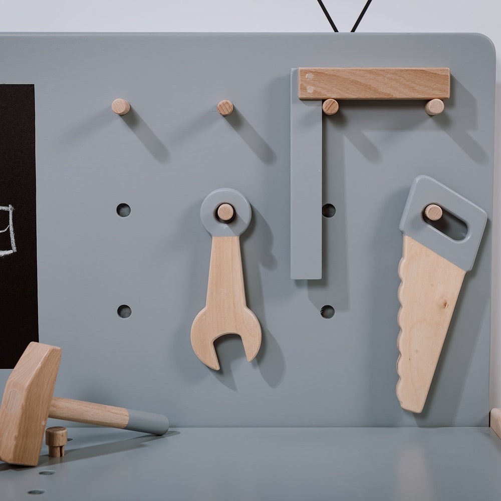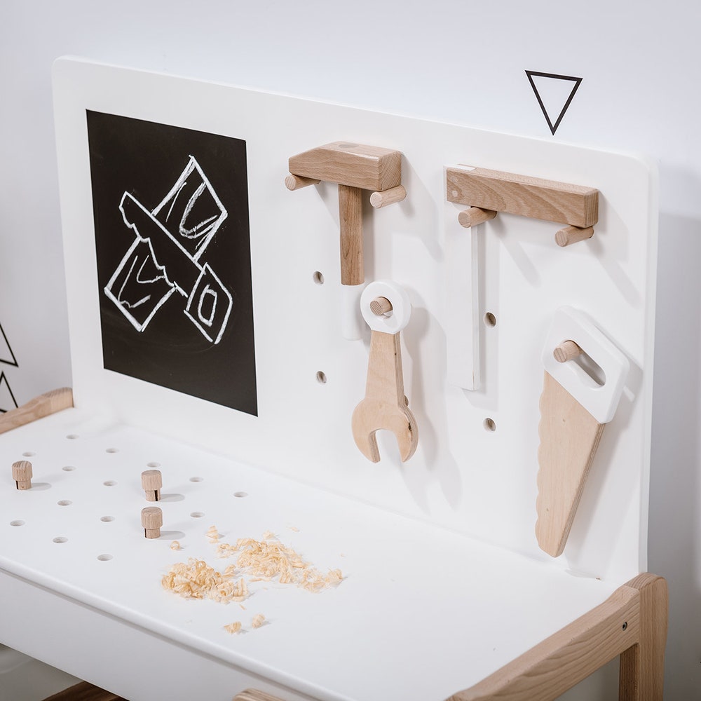 Discover the Woodjoy Tool Box – the perfect accompaniment to our Workbench, designed to spark creativity and inspire hands-on learning. As purveyors of multifunctional, Montessori-inspired kids’ furniture, we’re thrilled to present an accessory that fosters skill-building and imaginative play. Crafted with precision and guided by our commitment to quality, the Tool Box includes essential tools that mirror those found in a professional workshop. Inside, you’ll find a Screwdriver, a Hammer, a Hand Saw, and a Square – the fundamental components necessary for a budding craftsman or craftswoman.