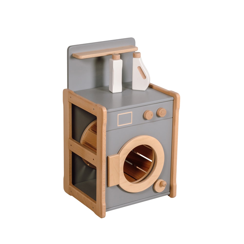 Little homemakers will love helping with the laundry with this wooden toy Washing Machine by Woodjoy – a fun addition to our play kitchen