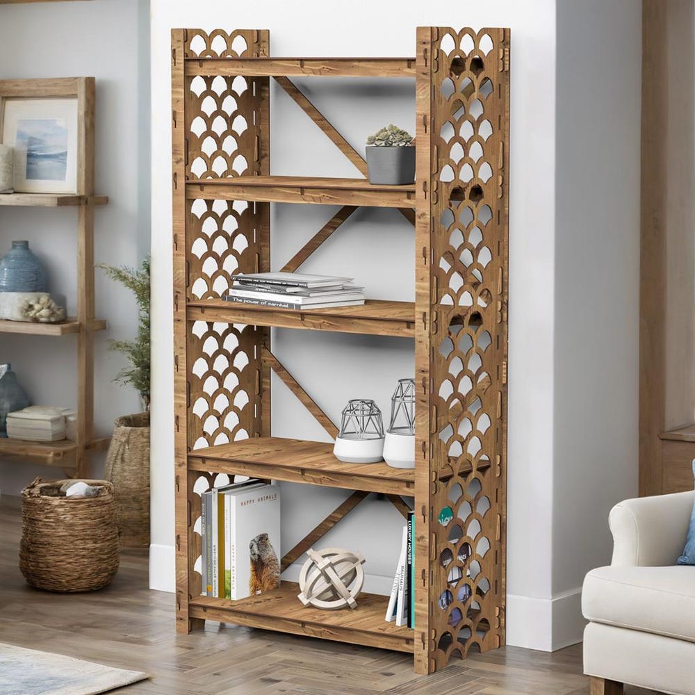 BIKUPA rustic bookshelf Reclaimed solid wood storage Vintage library Scaffold boards Furniture tv stand end table book organizer open shelf