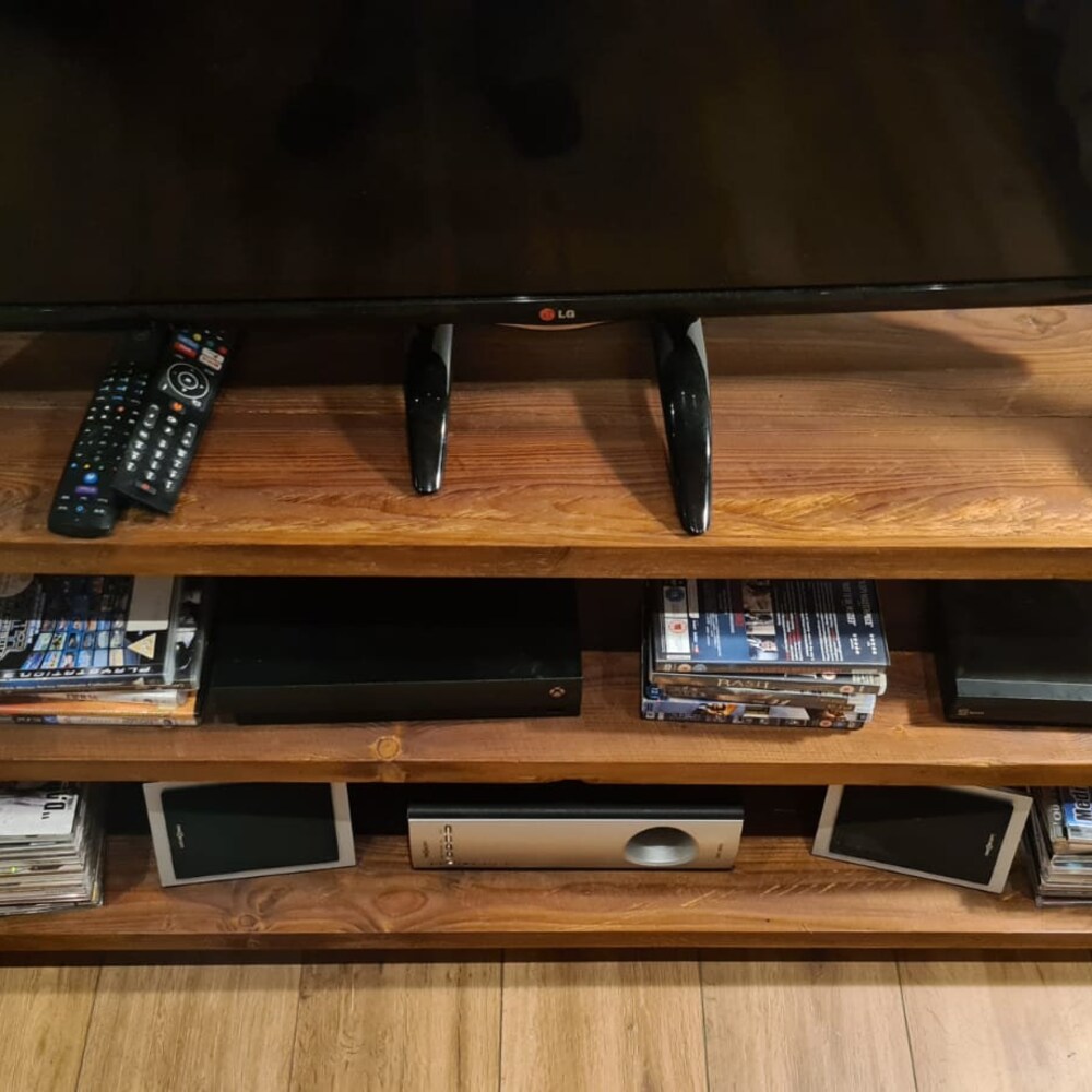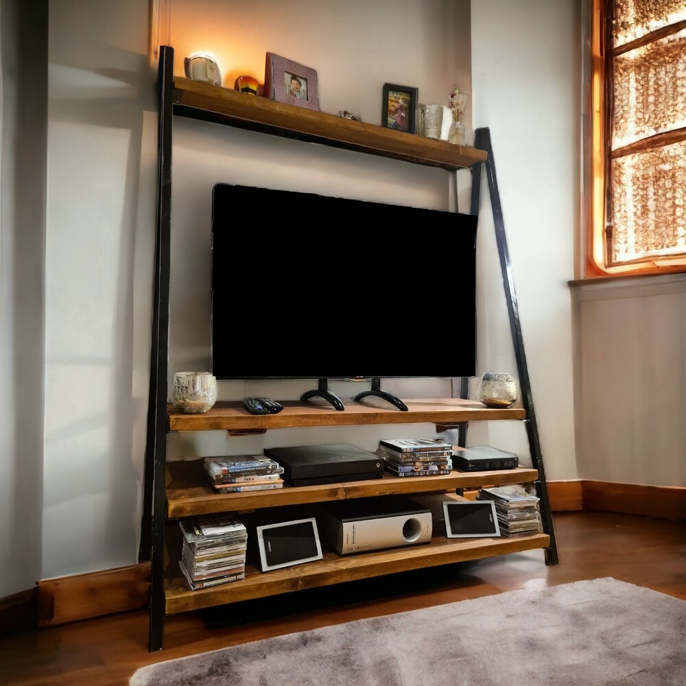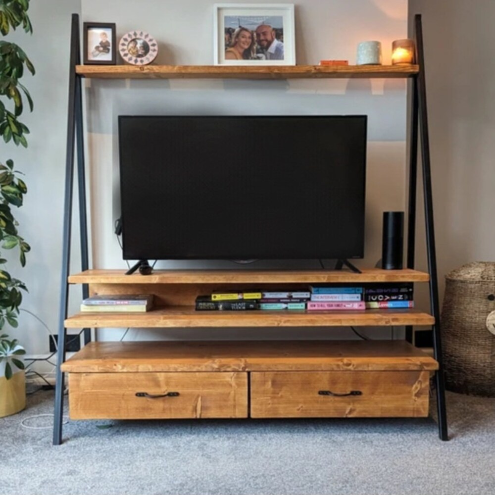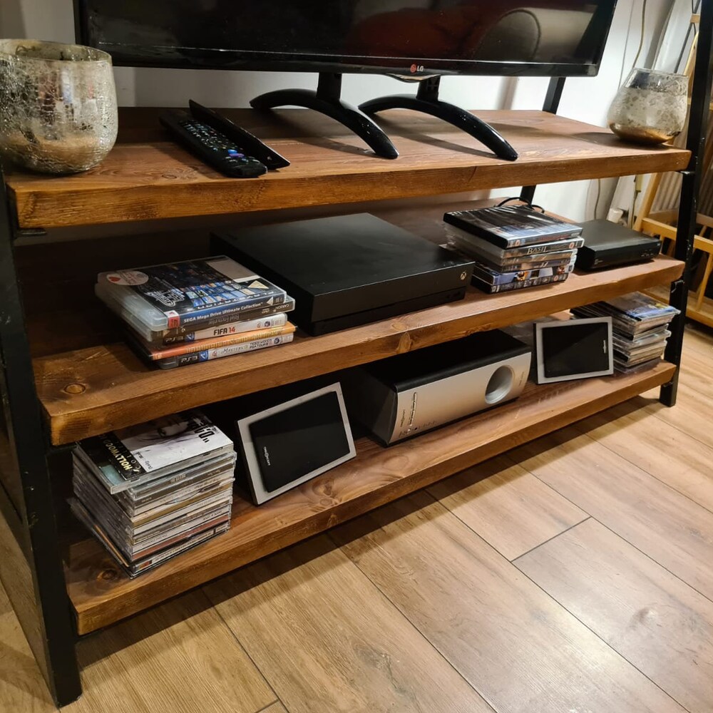 TRIGO is an impressive tv stand, made of beautiful reclaimed scaffold board, which are cleverly placed over a gorgeous steel frame that gives this unique rustic industrial yet modern vibe