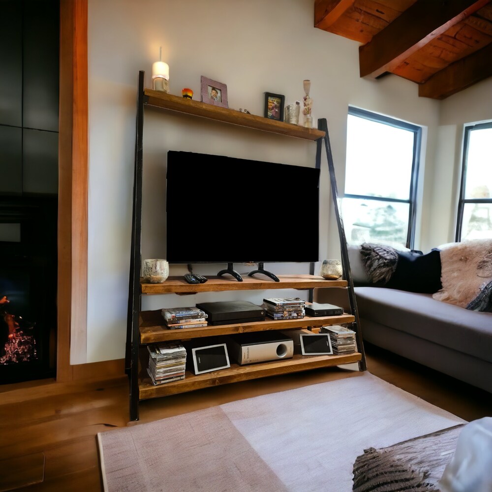TRIGO industrial TV stand, steel frame reclaimed wood shelves unit modern Furniture entertainment media center tv cabinet open shelf unit