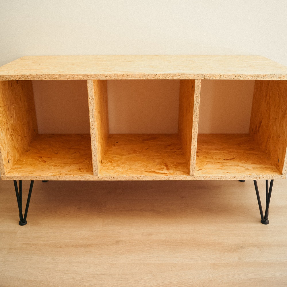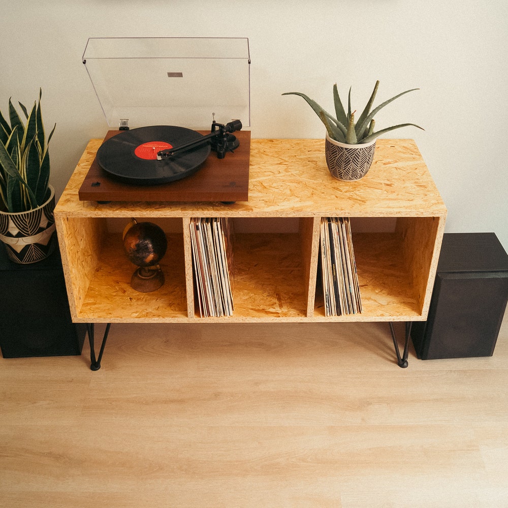 A Cute But Robust Turntable Stand To Store up To 120+ LP Records, Made From Durable and Recycled OSB Wood. An essential in every Hi-Fi Setup!